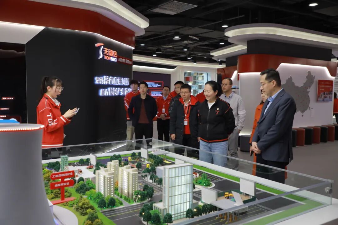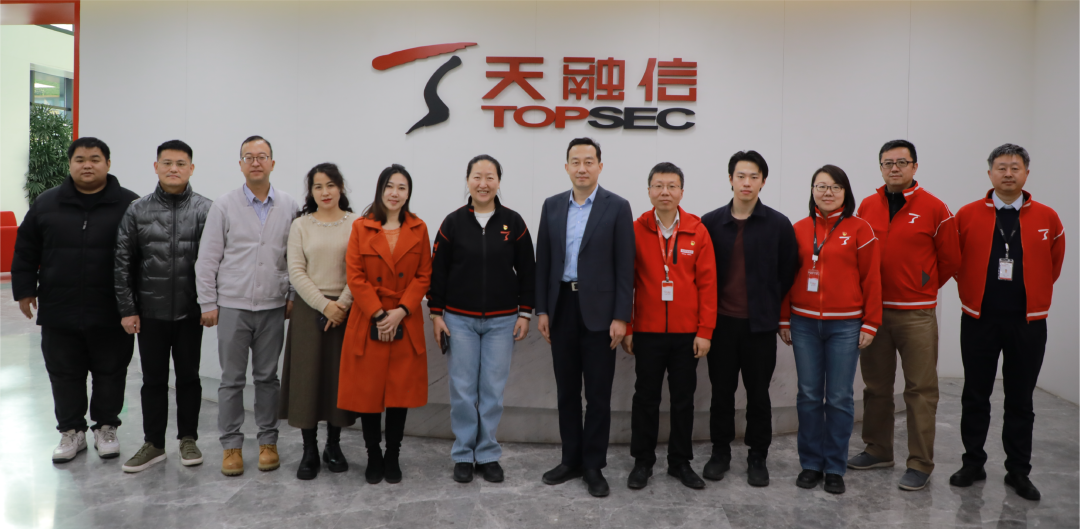 ,中国网络空间安全协会秘书长郝晓伟、副秘书长徐倩华、产业部主任赵亚利、数据安全工作组主任崔聪聪、党宣部主任贾建斌、培训部副主任李中戈、产业部副主任车喆彬等一行莅临天融信科技集团参观调研。