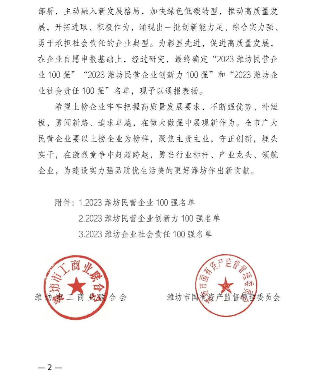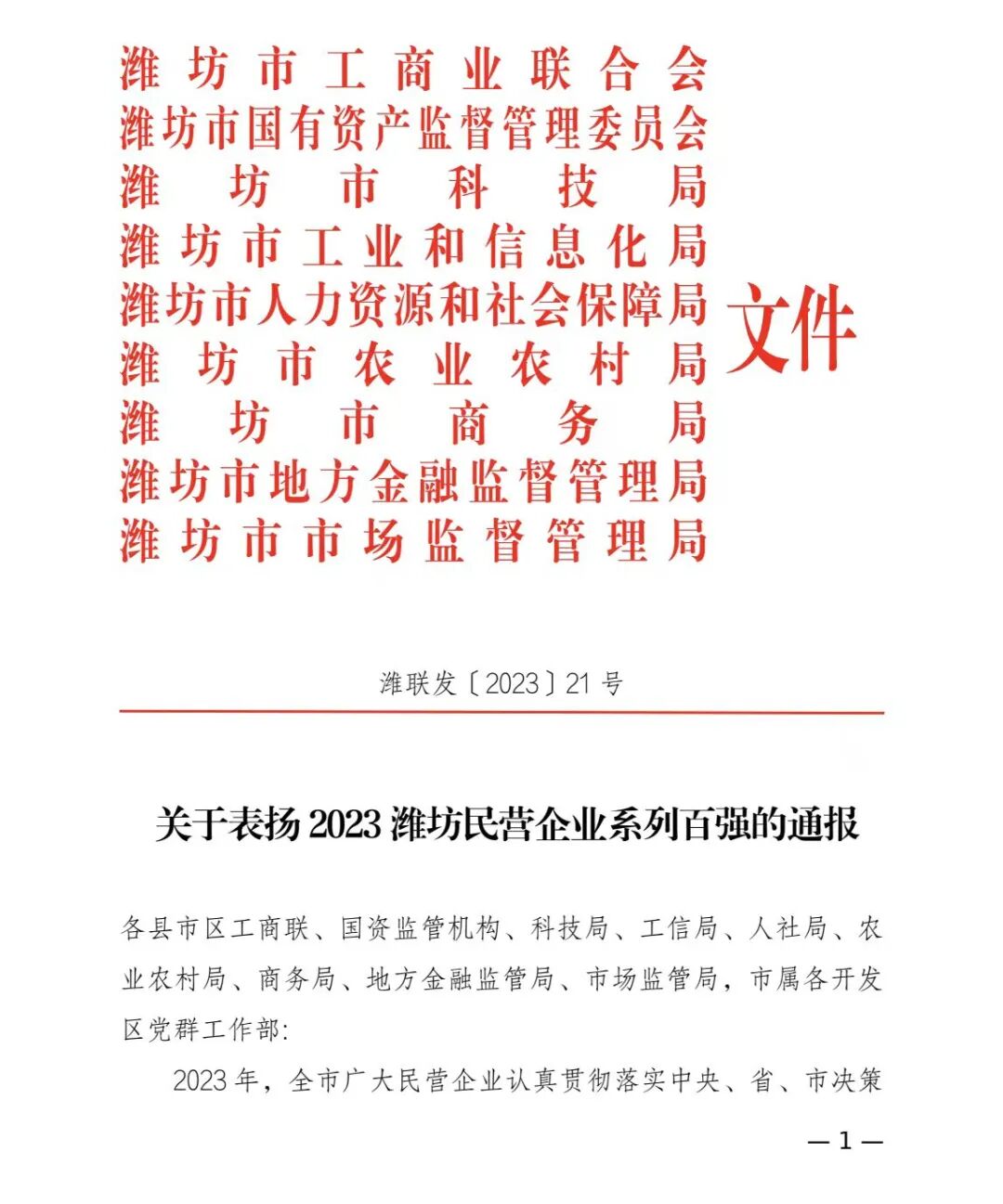 我会副会长单位华特磁电公司获评多项“2023潍坊民营企业百强”荣誉称号
