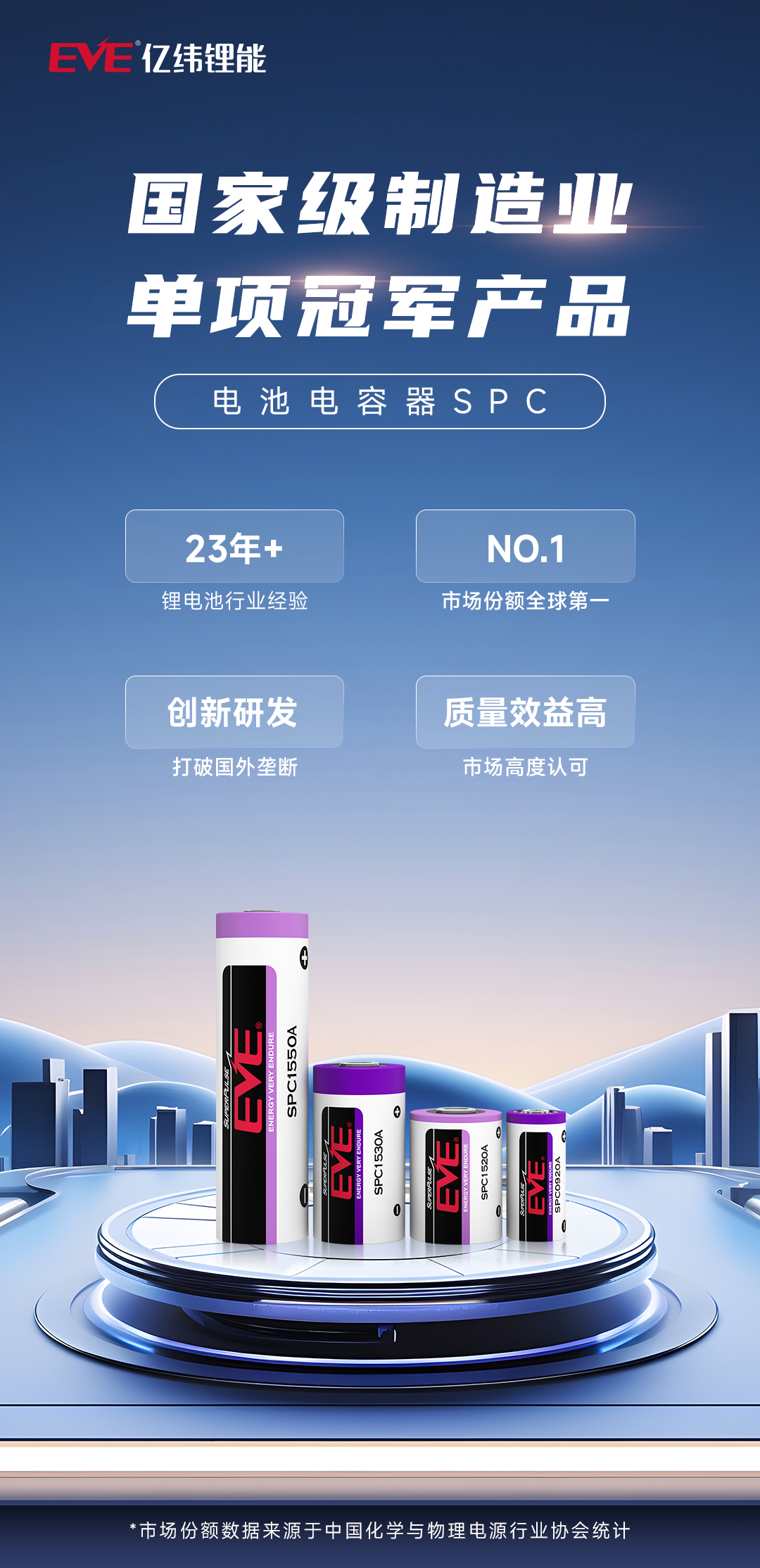 电池电容器SPC由亿纬锂能自主创新研发,打破国际技术垄断,首创性兼容了锂离子电池的高比能量特性和超级电容器高比功率特性,具有大电流放电能力、长寿命、宽温度范围的电源来支持数据的发送、传输、接收与反馈,是国家信息化、智能化技术发展的关键。亿纬锂能电池电容器SPC从材料到产品实现全过程自主知识产权,获得授权发明专利10项、授权实用新型4项,广东省科学技术一等奖、中国专利优秀奖、广东省专利优秀奖。