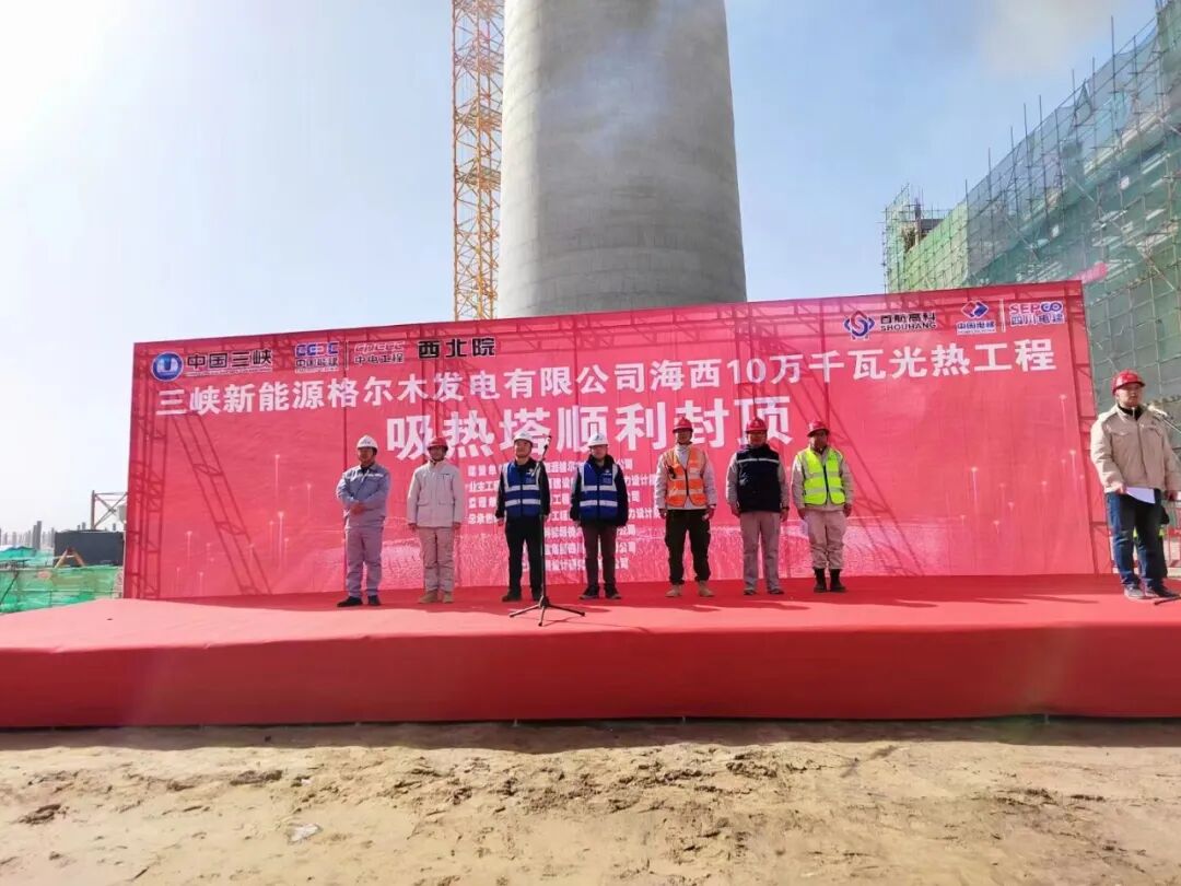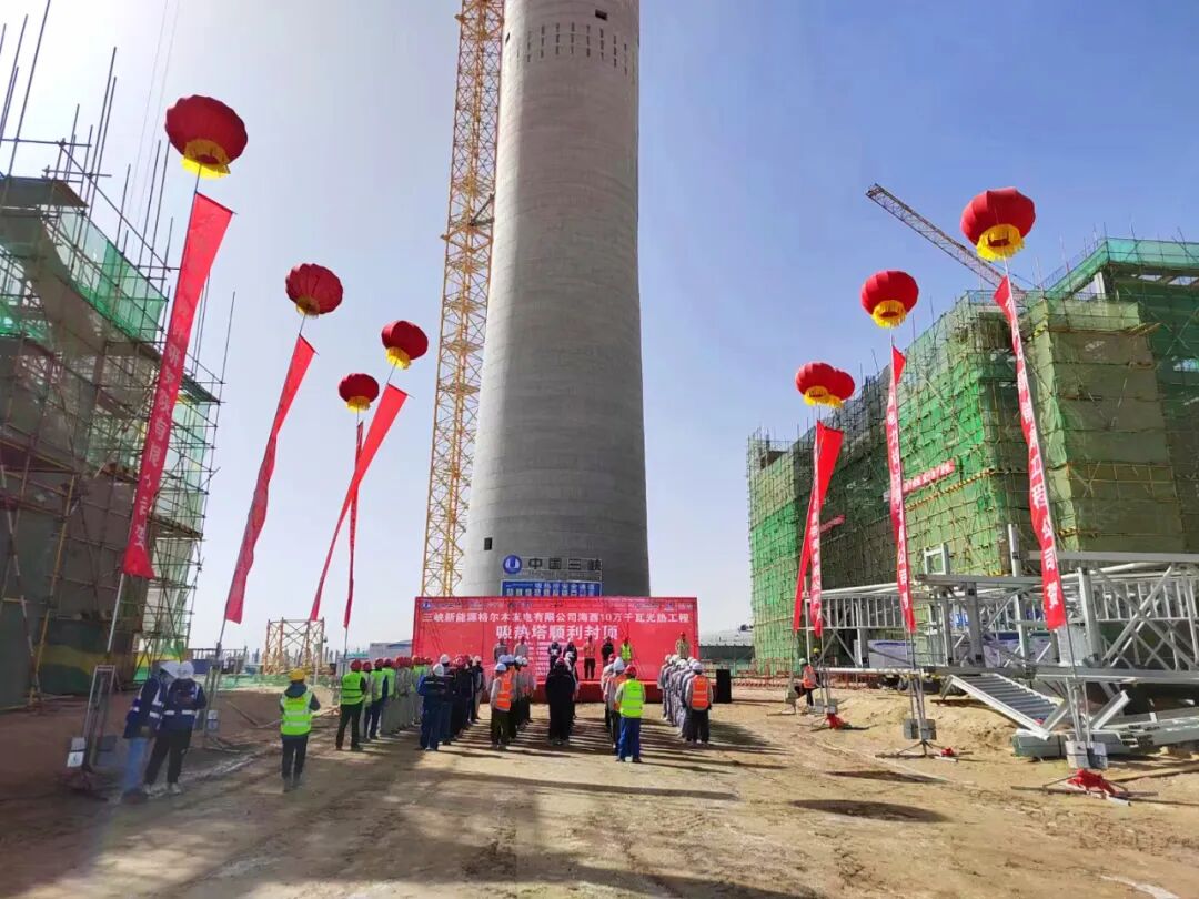3月18日,我会副会长单位首航高科能源技术股份有限公司联合体总承包建设的三峡新能源格尔木发电有限公司海西100MW光热发电工程顺利实现了吸热塔筒壁封顶。吸热塔被誉为整个光热电站的“心脏”,是工程中至关重要的组成部分。吸热塔顺利封顶也是继第一面镜子下线,迎来的第二个重要节点。这是吸热塔土建施工转向安装施工一个重要节点。据介绍,吸热塔建筑安装施工是光热发电工程的主线,每个节点的按期完成为项目总体进度提供了保障、为后续安装施工创造了条件。首航高科和太阳能光热联盟副理事长单位——中国电力工程顾问集团西北电力设计院有限公司(牵头)、中国电建集团四川工程有限公司、上海勘测设计研究院有限公司联合体于2022年7月中标三峡能源格尔木100MW光热项目EPC总承包项目。根据联合体分工,首航高科负责光热发电项目EPC总承包管理,并负责提供镜场设备及控制系统、吸热器及集热系统、储热罐、空冷系统等主要光热电站设备供货。该项目位于青海省海西州格尔木市乌图美仁光伏光热园区,是青海海西基地160万千瓦光伏光热项目的子项目之一。