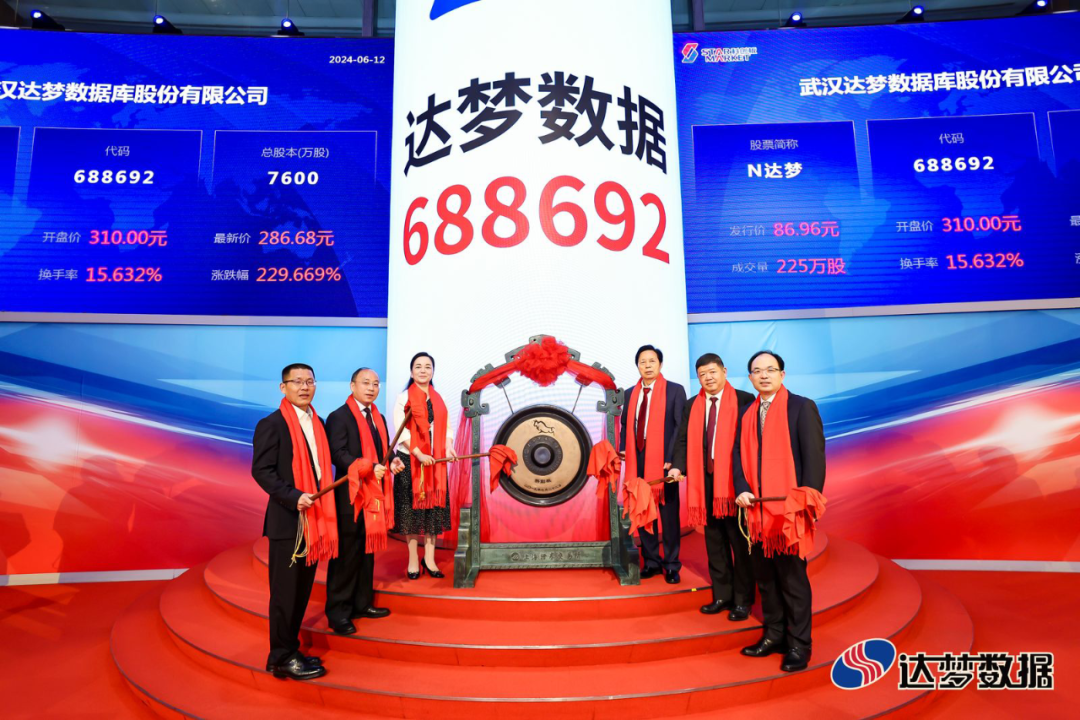 2024年6月12日,我会理事单位武汉达梦数据库股份有限公司(股票名称:达梦数据;股票代码:688692)在上交所科创板挂牌上市。本次发行上市后,达梦数据成为国内专注于数据库领域的、国产数据库行业首家上市公司。