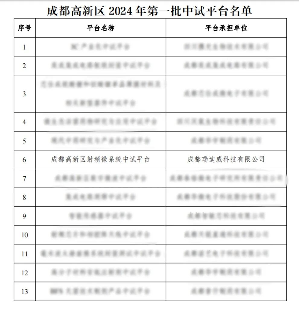 喜报!我会理事单位成都瑞迪威公司射频微系统中试平台成功入选成都高新区2024年首批中试平台