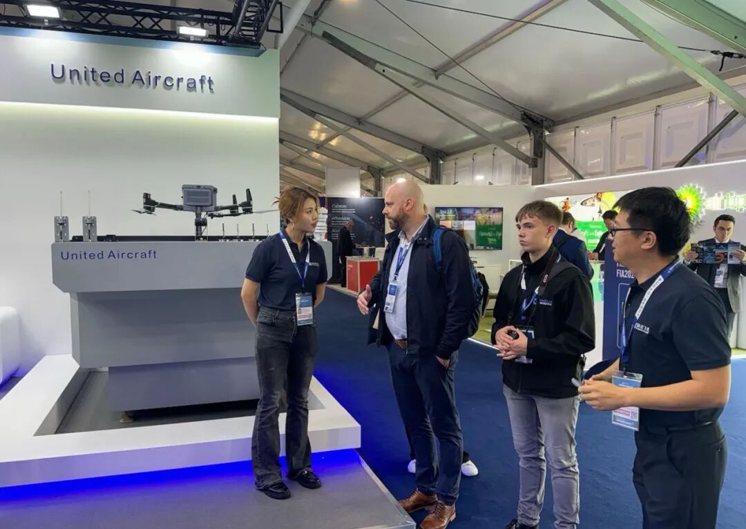 尖端的技术实力与卓越的产品性能,倾转旋翼航空级无人机、TD550和Q20无人飞行平台在航展现场掀起了无人机“中国旋风”,吸引无数专业人士的目光。现场发布的联合飞机低空物流解决方案,获得欧美航空界专业客户的高度关注和好评,彰显了中国商业航空企业正在构建全球低空经济风口和世界航空行业全新格局。