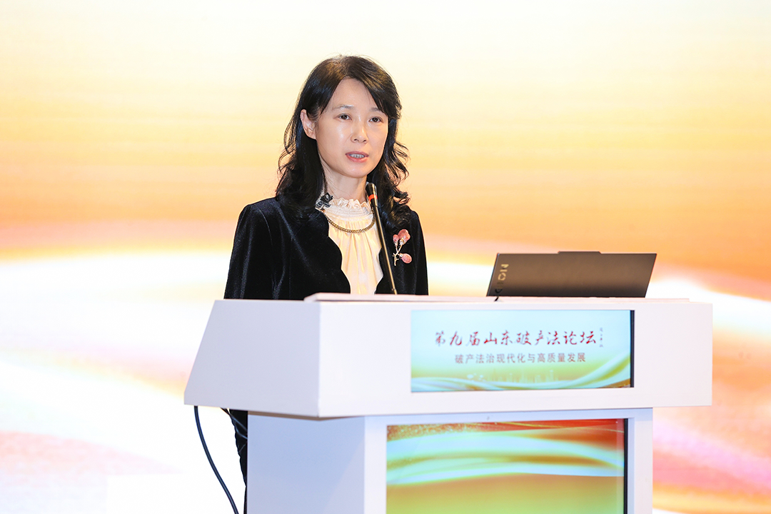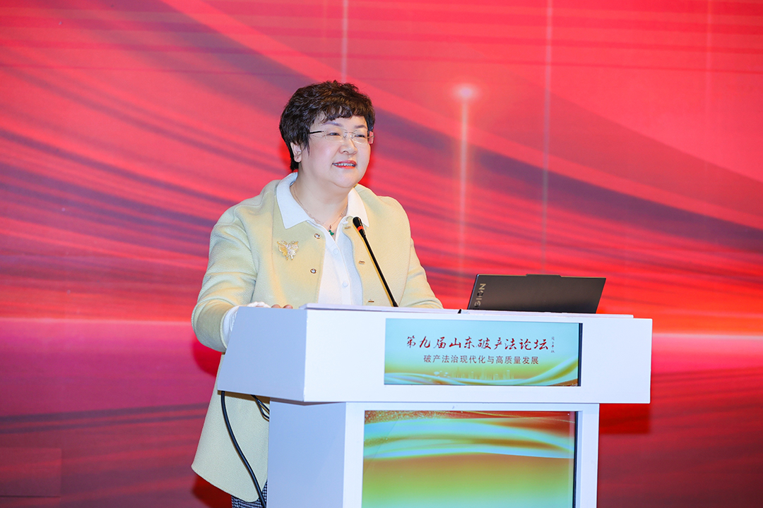 刘平会长首先代表组委会向出席论坛的领导、嘉宾表示热烈欢迎与诚挚感谢。她表示,本届论坛以“破产法治现代化与高质量发展”为主题,紧扣时代发展脉搏。山东作为儒家文化的发源地,崇尚“仁义为本、通权达变”的智慧;破产法作为市场经济重要的基础性法律,正是这一智慧在当代法治中的生动实践,肩负着优化资源配置、激发市场活力、维护公平秩序的重要使命。推动破产法治现代化,不仅是健全社会主义法治体系的必然要求,更是畅通市场主体退出、促进产业升级、培育新质生产力、服务经济高质量发展的关键路径。因此汇集来自北京、上海、浙江、江苏、甘肃、河北、陕西等地的全国专家力量,碰撞思想、凝聚共识,共同为法治、经济的高质量发展贡献智慧,十分必要且富有意义。随后,她宣布第九届山东破产法论坛正式开幕。