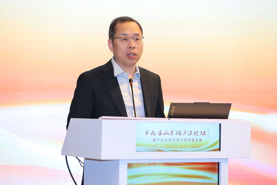 山东省法学会党组成员、专职副会长兼秘书长孟斌在开幕式上致辞。党的二十届四中全会提出了社会主义法治国家建设达到更高水平的目标任务,强调要健全完善市场化、法治化的法律制度,为新时代破产法事业发展及破产法修改提供了根本遵循和行动指南。破产制度作为市场经济的基础性制度,是优化资源配置、防范化解市场风险、维护市场秩序的重要法治工具,被誉为市场经济的“清道夫”和“稳定器”。现代法律制度的完善程度,直接关系到营商环境的法治化成色,关系到经济社会高质量发展的根基稳固,更关系到国家治理体系和能力现代化在经济领域的具体实践。