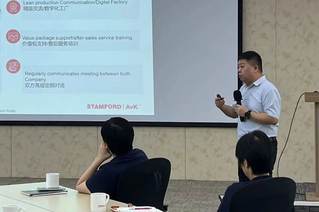 来自工厂团队的供应链精益管理经理罗建军也向与会者详细介绍了斯坦福®(STAMFORD®)在精益数字化生产和运营方面的最新进展。随后,佛光团队实地参观了斯坦福®(STAMFORD®)位于无锡的两家工厂,亲身感受了这些年来工厂所经历的变化,以及在数字化和自动化上的进步。
