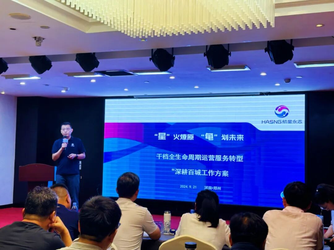 2024年9月21日—22日,我会理事单位北京航星永志科技公司2024年业务转型及产品发布会议在河南郑州隆重召开,航星永志董事长郝志军、总裁张洪涛、常务副总裁郭晓君、副总裁徐显和、业务副总裁郭鑫等总部人员以及全国30余个区域分子公司同事参与此次会议,共话行业创新机遇与挑战,共鉴创新产品,共谋市场破局之道。航星永志董事长郝志军发表“未来,航星永志战略发展布局”主题讲话,结合全球经济格局,面对机遇与挑战并存的市场环境,航星永志以小龟文档服务中心为战略支撑,通过“自下而上”+“自上而下”的业务闭环,布局人事与文档行业的数字化转型工作,不断研发AI+大数据的新技术升级信息化业务,逐步推出新产品、新技术,满足市场多元化、个性化的需求,并号召所有航星人以为客户创造价值为核心,离开舒适区,迎接挑战,共同成为持续事业发展的真正命运共同体。航星永志总裁张洪涛结合国家战略布局及时代背景,分析了经济下行周期,文档产业发展的规律和趋势以及城市文档产业的潜力。在数字经济背景下,紧抓时代发展新机遇,提出干部人事档案全生命周期运营服务深耕百城规划方案,通过建设线上文档云平台+线下小龟文档服务中心,建立并巩固本地核心资源,提供本地化销售、实施、交付服务,以标准化模式在全国百余座城市实现下沉布局,持续为用户提供安全、专业、经济、高效的文档产业价值。