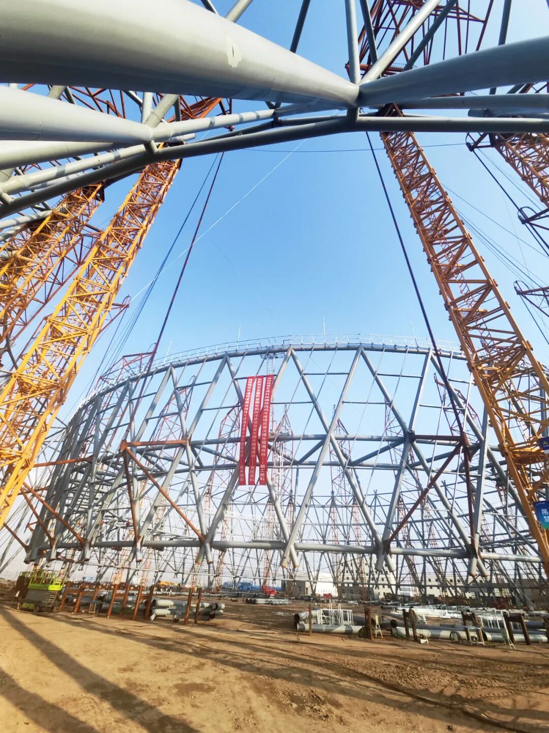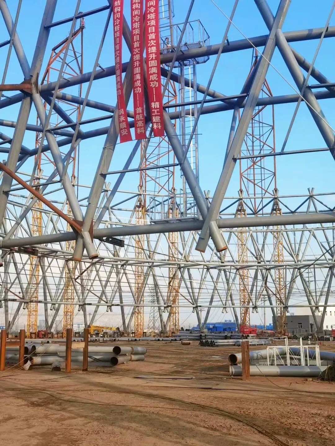 2024年9月18日下午3:56,由我会副会长单位首航高科公司承建的内蒙古东源2×350MW机组钢结构间冷塔EPC项目,在内蒙古乌海进行塔筒首次提升,历经2小时,取得圆满成功。