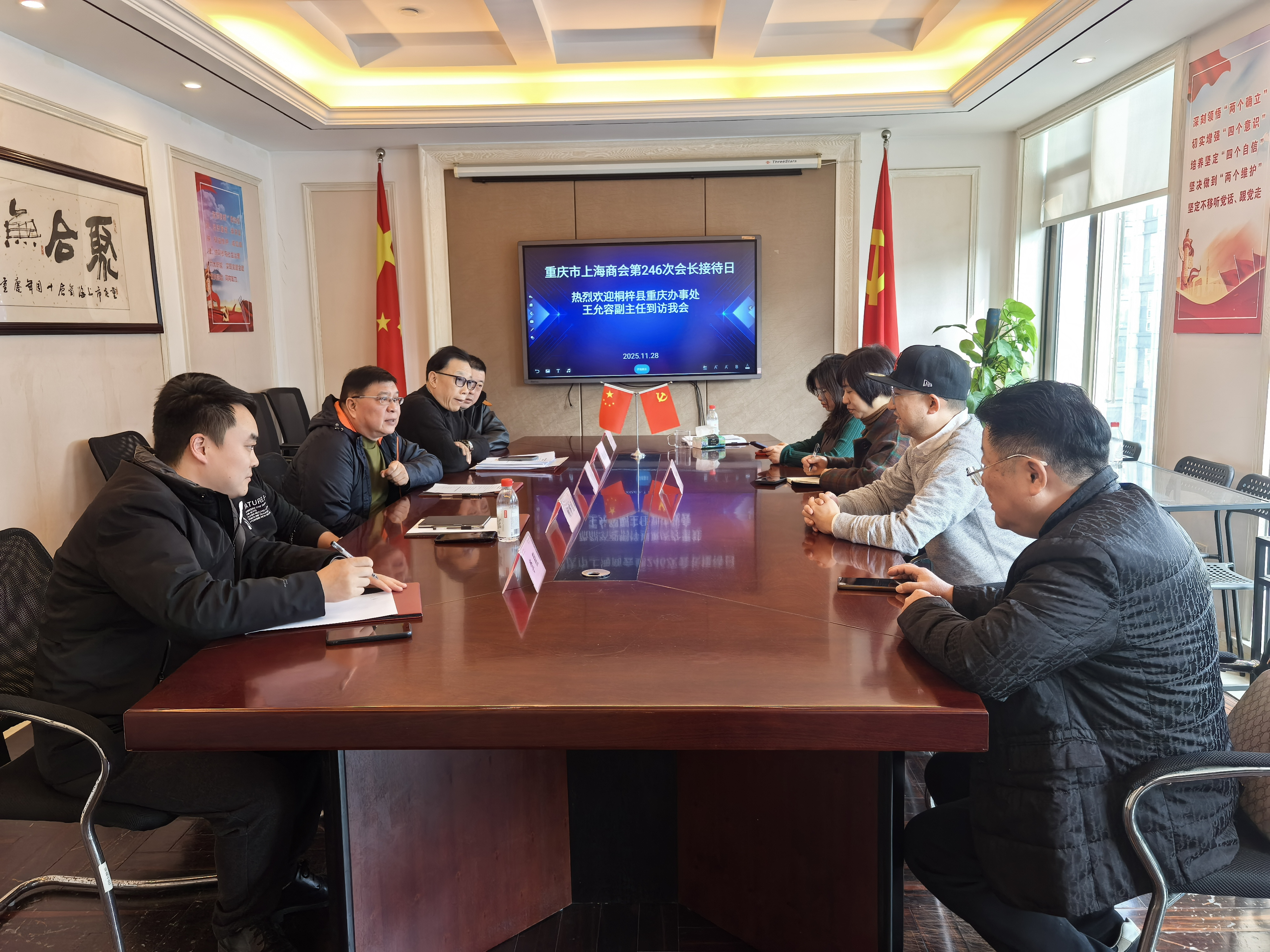 11月28日,重庆市上海商会举行第246次会长接待日活动。商会党委书记韦根带领专职党委副书记姚庆伟,副会长何华勇、沈时清,秘书长李程,接待了桐梓县政府驻成渝办事处副主任王允容和汇助企(重庆)企业咨询有限公司总经理罗思远、重庆起鑫洁具销售有限公司总经理张彩龙等。