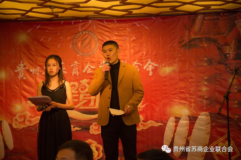 随后举行了贵州省苏商企业联合会2018年春节团拜会,晚宴在主持人商会王保刚常务副会长和商会郭青小姐闪亮登场后拉开帷幕,整台晚会融演唱、抽奖、游戏、抢红包、会长拜年、古诗朗读等多姿多彩的节目为一体,真正是绚丽多姿、美不胜收。