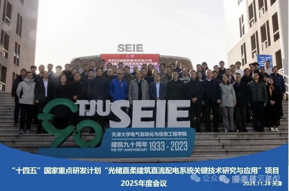 2025年11月28日,由深圳市建筑科学研究院股份有限公司主办、天津大学承办的“十四五”国家重点研发计划“光储直柔建筑直流配电系统关键技术研究与应用”项目2025年度会议在天津顺利召开。会议汇聚了清华大学、天津大学、深圳建科院等单位的70余位专家学者与企业代表,包括江亿院士、王成山院士等12位咨询专家组成员。项目组全面汇报了各课题进展,并重点评审了24项示范工程。智引擎创始人兼董事长尤中海在会上作了“光储直柔点亮非洲”专题汇报,并结合公司示范工程案例,分享了光储直柔技术在绿色能源领域的应用潜力。经专家组论证,智引擎未来空间等示范工程通过评审,为项目后续推广奠定了实践基础。