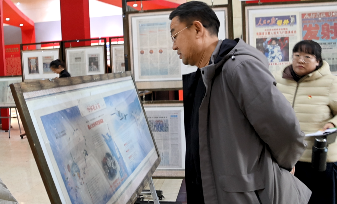 内蒙古古代岩画陈列展厅中,那些镌刻在山石上的古老印记,是草原先民留下的文明密码,承载着内蒙古地区悠久的历史文化与先民们的生存智慧、精神追求,让我们在触摸历史脉络中感悟民族文化的深厚根脉。“绥西烽火 山河铭记”专题展则以详实的史料、珍贵的文物与生动的场景,还原了绥西抗战的峥嵘岁月,定格了包头儿女在民族危亡之际挺身而出的英雄瞬间,让我们深刻感悟“天下兴亡、匹夫有责”的爱国情怀与“不畏强暴、血战到底”的民族气节。而从“两弹一星”的惊天伟业到“神舟”飞天的浩瀚征途,从“嫦娥”探月的浪漫壮举到“天问”巡火的壮志豪情,中国航天事业的每一步跨越,都镌刻着共产党人的初心使命与奋斗足迹。航天报纸专题展以报纸为载体,串联起中国航天从起步到腾飞的关键节点,一张张泛黄的报纸、一段段珍贵的报道,既是航天人攻坚克难的生动见证,更是党领导下国家科技进步的辉煌缩影。对于商会党员而言,这三场展览构成了一部立体的“精神教科书”——先民的坚韧、先烈的热血与航天人的拼搏一脉相承,都将激励我们在商海中坚守初心、勇立潮头,以实干回报社会。