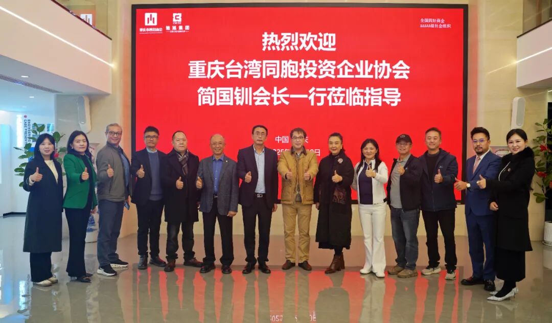 为加强商会间沟通联动,拓宽会员企业合作渠道,推动川渝台经贸深度融合发展,2025年12月10日,重庆市四川商会执行会长曹友强、终身名誉会长彭学平、秘书长熊静霞、副秘书长裴福来等一行前往重庆市台湾同胞投资企业协会开展参访交流活动。市台协会长简国钏、资深会长李文勋、秘书长彭艳艳,副会长陈振丰、彭健嘉等协会干部在台协会馆热情接待了我会一行,双方围绕资源共享、产业协同等核心议题展开深入探讨,达成系列重要共识。