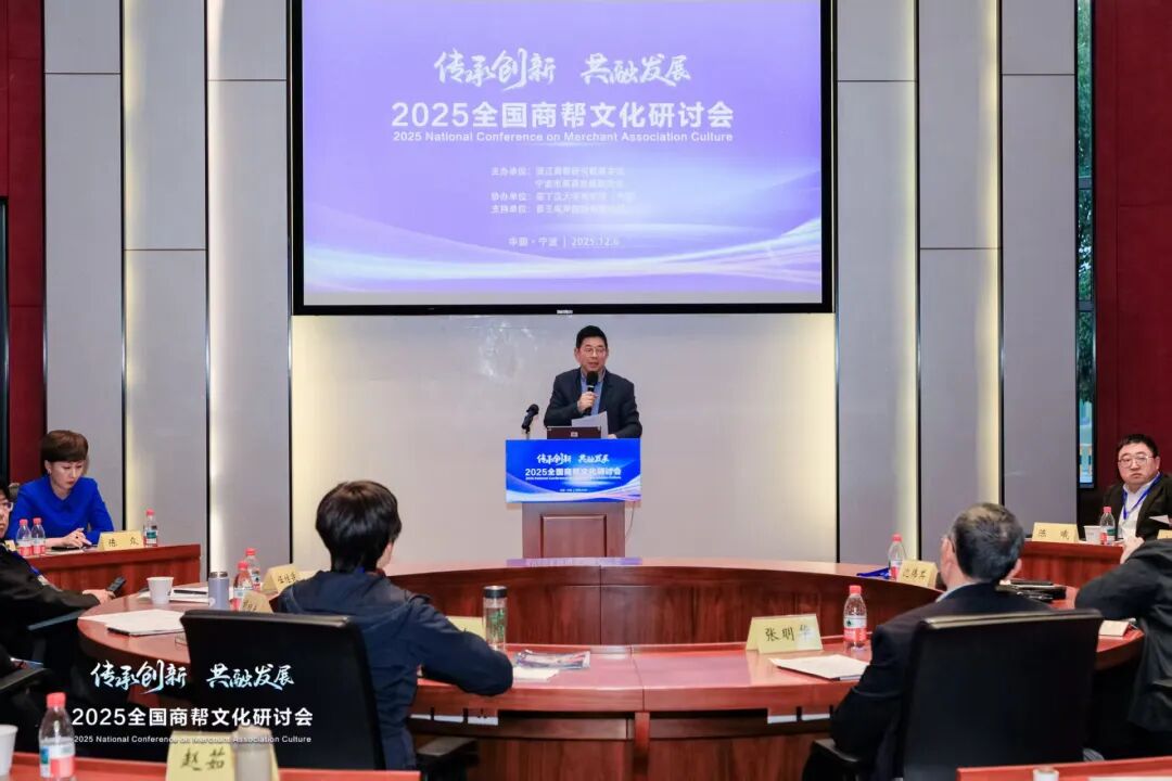 主持人宁波市甬商发展研究会秘书长曹云介绍,为深入贯彻党的二十届四中全会精神,进一步促进全国各地商帮之间的交流与合作,推动商帮文化的创造性转化与创新性发展,由浙江商帮研究联席会议、宁波市甬商发展研究会等发起,特召开 2025 全国商帮文化研讨会。