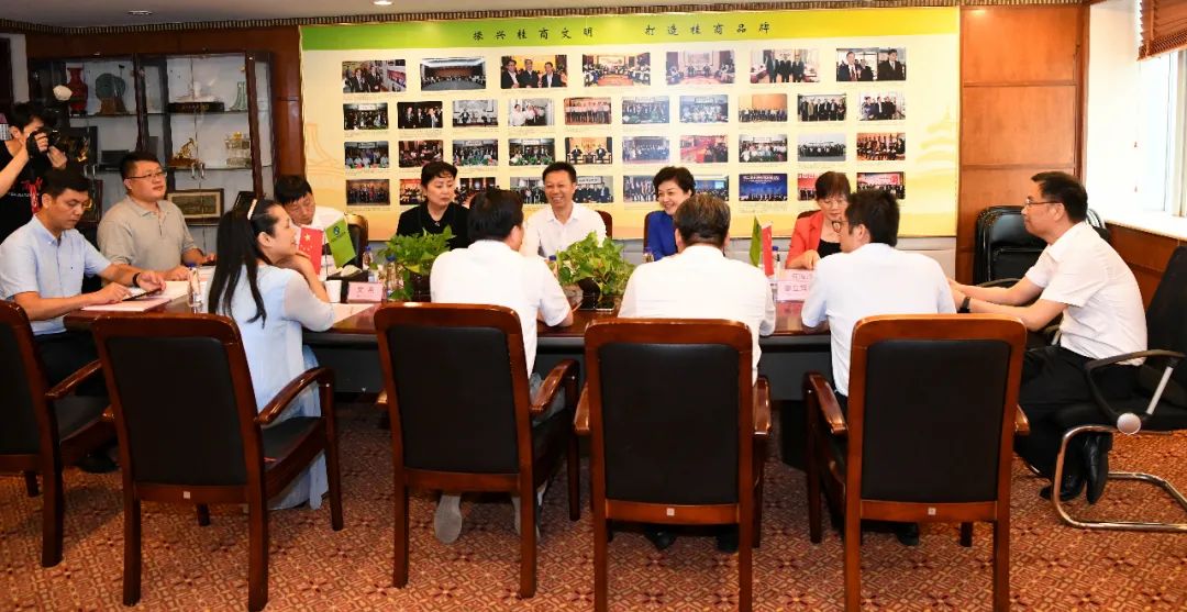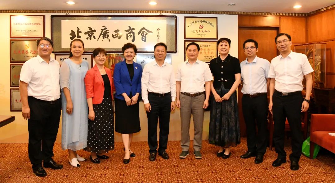 7月30日下午,广西自治区商务厅党组书记、厅长,自治区口岸办主任、自贸办主任蒋连生,广西自治区政府驻京办党组书记、主任罗荣莉,广西自治区政府驻京办副主任梁辉等领导莅临商会新办公场所参观指导,商会会长郑志热情接待并举行座谈交流。