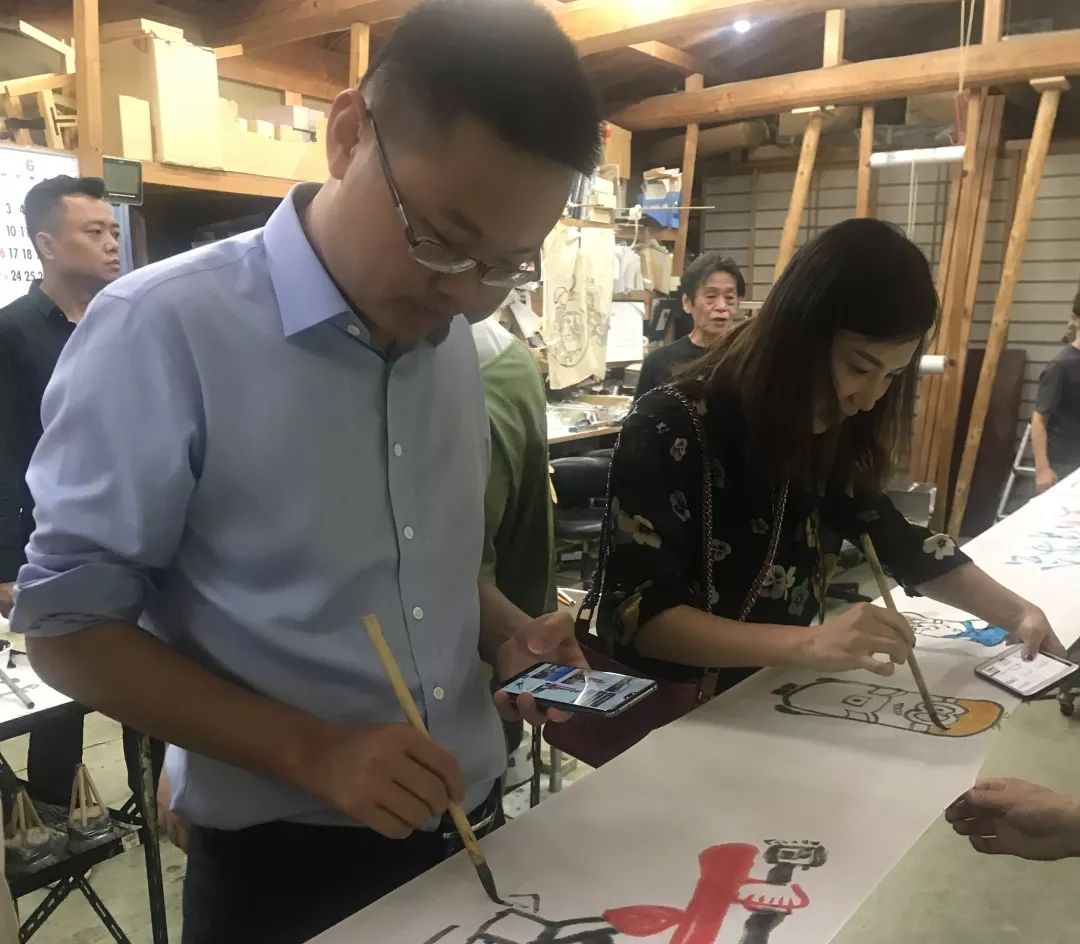 祐斋亭是日本很传统的老字号手工染布工坊,至今仍坚持纯手工生产,环境幽静,是日本皇家布匹的生产点,企业家们在此体验纯手工生产技艺,感受将纯手工技艺坚持了千年的匠人精神。