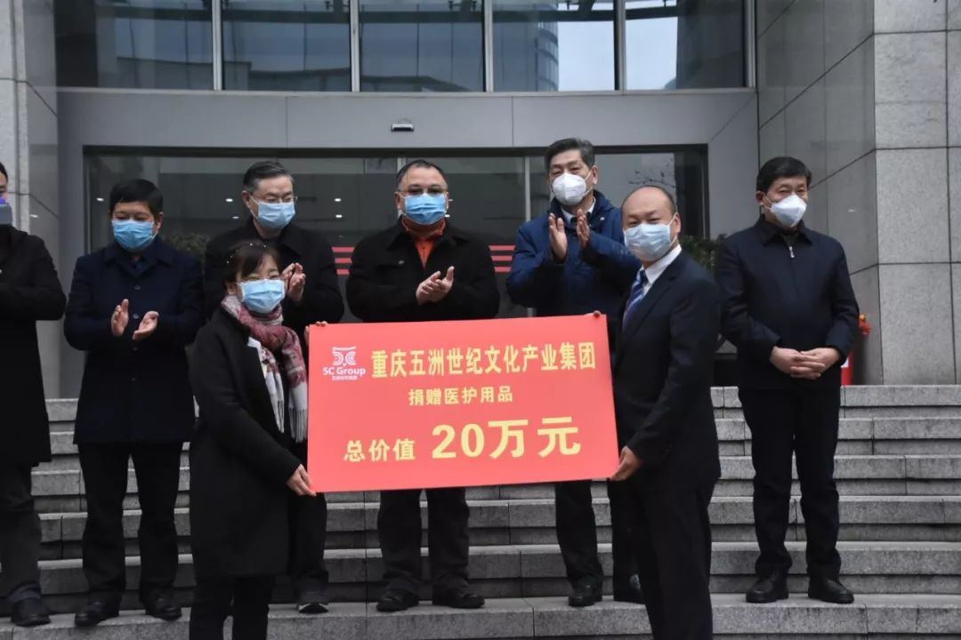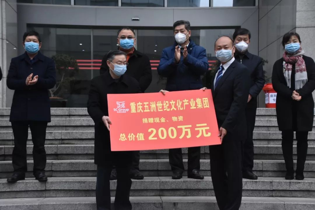 2月10日,重庆五洲世纪集团向重庆市九龙坡区慈善总会捐赠物资及现金200万元,携手一线共抗疫情。
