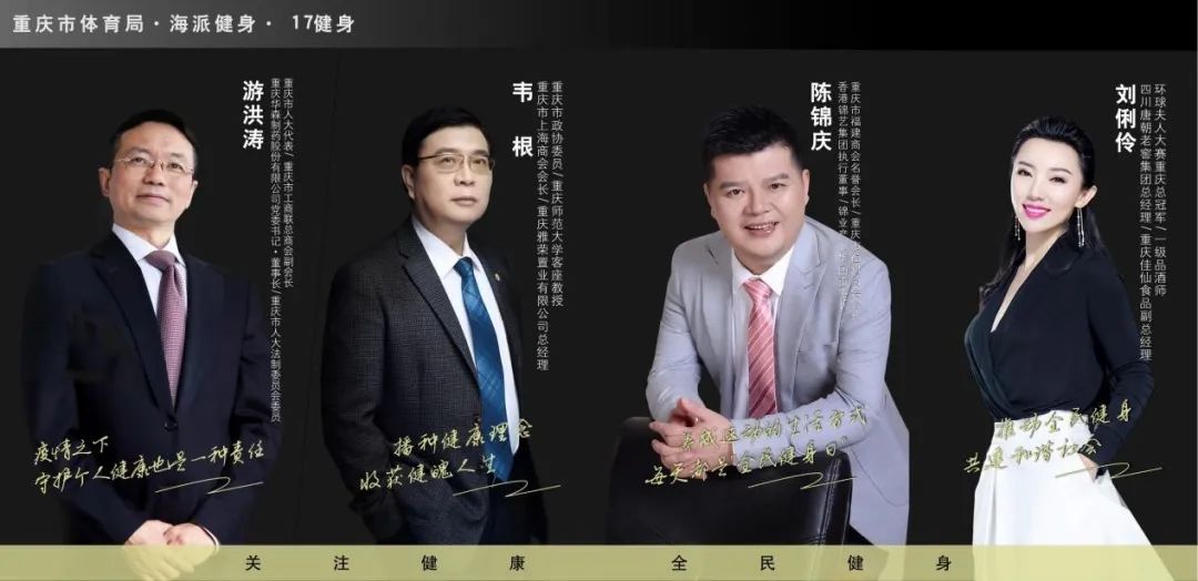 2020年8月8日是第12个“全民健身日”,结合当前疫情防控形势,以“全民健身日”为契机,在重庆市体育局、重庆市社会体育指导中心的指导与支持下,西南健身连锁领军品牌——海派健身携17健身,联合16位重庆本土知名民营企业家共同行动,进行“关注健康 全民健身——民营企业家助力健康中国”线上主题展示活动。