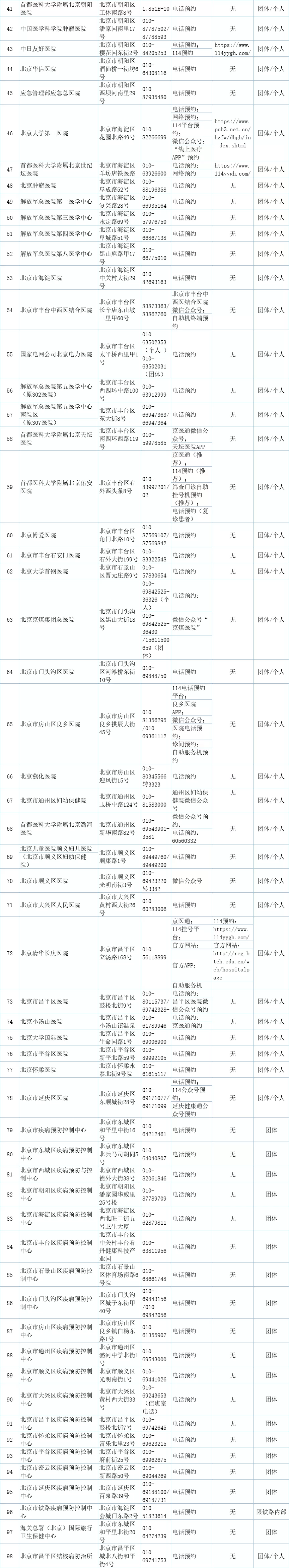 附:98家提供新冠病毒核酸检测服务的机构名单