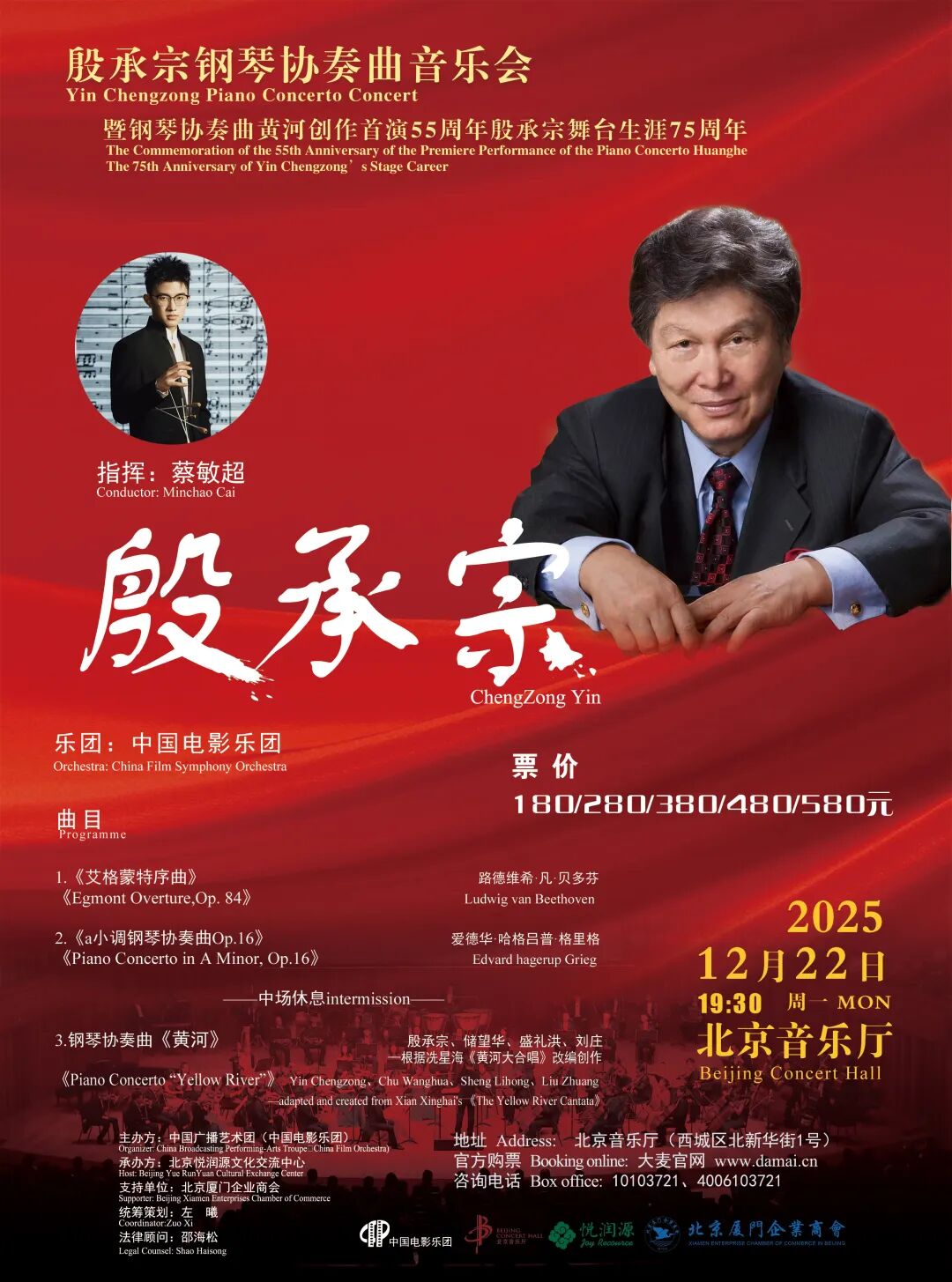 2025年12月22日晚,作为中国最负盛名的钢琴家之一,年逾八旬的殷承宗先生是钢琴协奏曲《黄河》的核心主创与首演者,曾将这部融合西方协奏曲形式与中国民族元素的作品推向世界,此次演出,他将携青年指挥家蔡敏超及中国电影乐团,再度奏响《黄河颂》、《保卫黄河》等经典乐章,其特意加入的琵琶、唢呐、竹笛等民族乐器,更将赋予作品排山倒海的艺术张力与深沉的民族情怀。