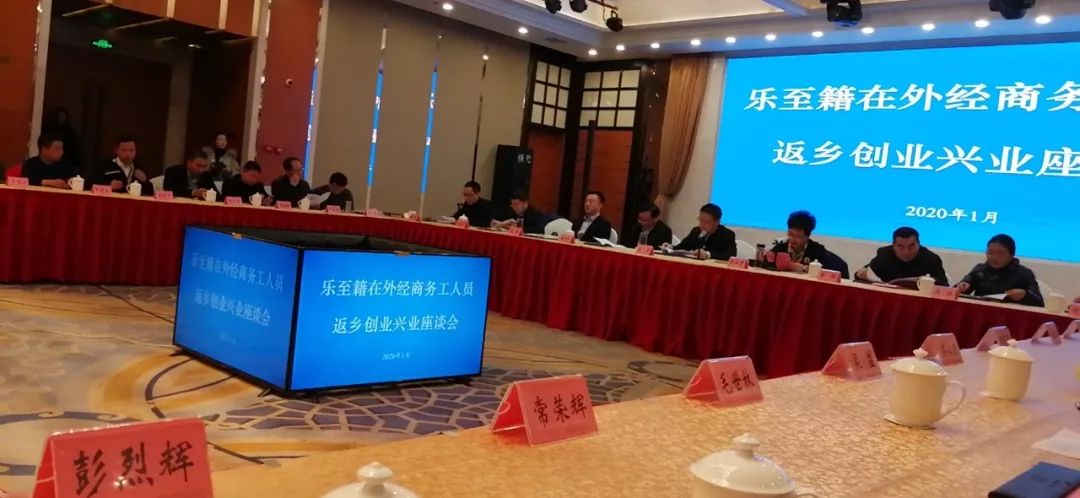 2020年1月19日下午,乐至籍在外经商务工人员代表创业兴业座谈会在资阳市乐至县玲路•酒店宏扬厅成功召开。
