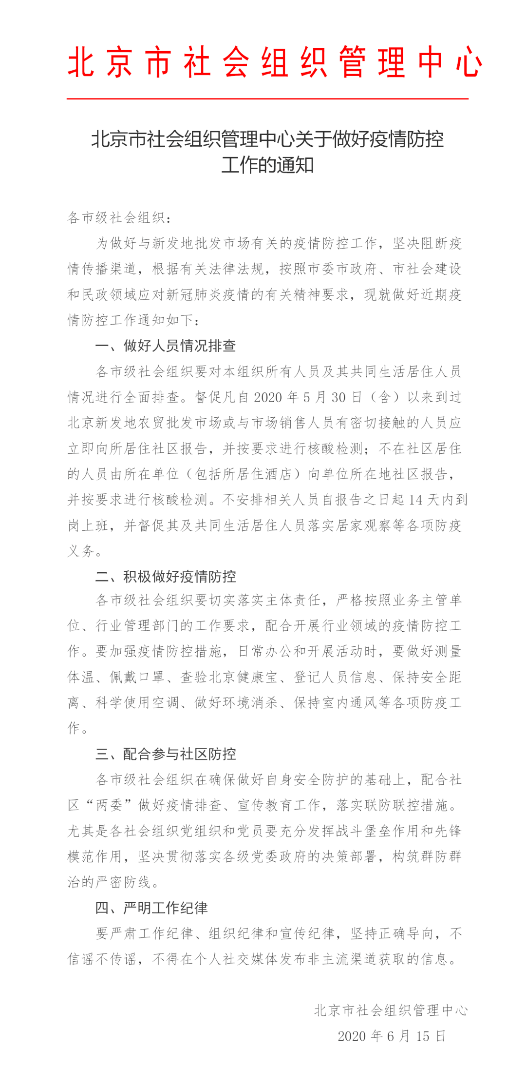 北京市社会组织管理中心关于做好疫情防控工作的通知