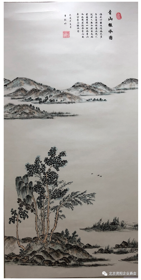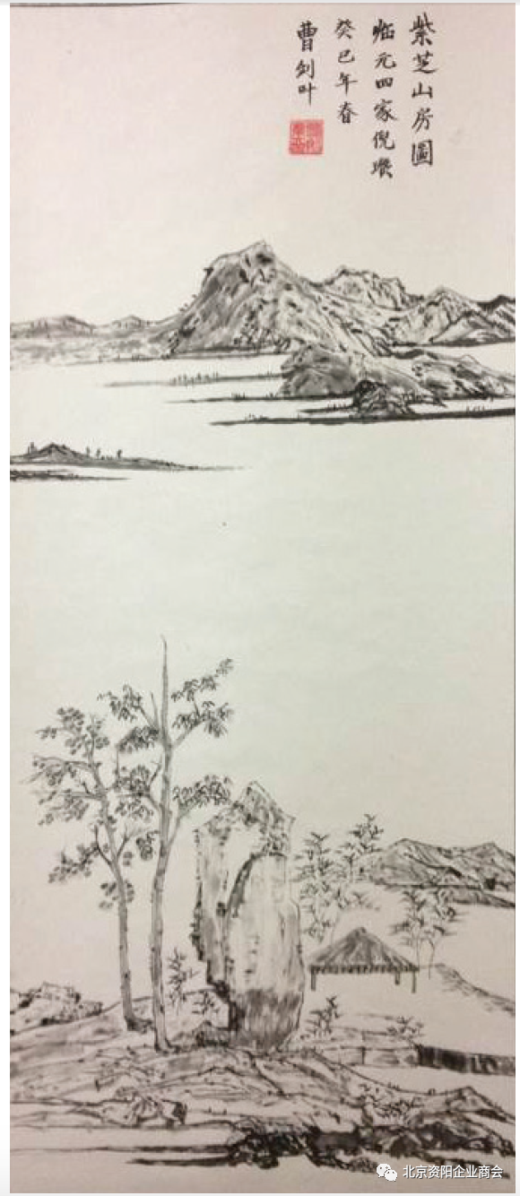 主要绘画方向为国画山水,以元四大家之一倪瓒“一河两岸”风格的山水为主,意境萧疏、阔远、平淡、自然。