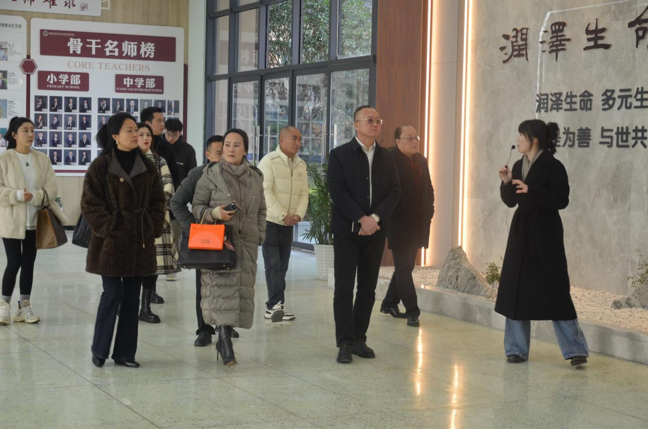 在学校代表的陪同下,商会嘉宾参观了西川汇锦都学校的校园环境、教学楼、实验室、艺术中心、体育活动场馆、学生宿舍及食堂等教育教学和生活空间,对部分特色功能区进行了重点参观了解。嘉宾们边走边看、边听边问,学校先进的硬件设施、浓厚的人文氛围以及富有特色的校园文化建设深深吸引了每一位参访者,学校的办学条件优越、育人环境温馨,体现出鲜明的教育理念与扎实的办学品质。