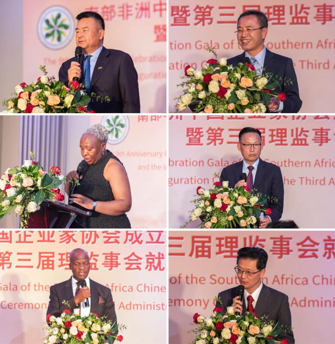 南部非洲中国企业家协会创会会长李国东、新任会长顾平邀请到了南非前总统卡莱马·莫特兰蒂及前第一夫人古菇·莫特兰蒂到会。安徽省政协郑宏副主席、西北省议长德斯博·莫霍诺、中国驻约翰内斯堡总领馆周育江副总领事、豪登省经济发展厅厅长莫特拉乔·莫霍尔瓦、中国贸促会南非首席路明主任、南非警民中心主任李新铸发表讲话表达了鼓励和祝福。本协会多国会员代表、在南中资机构、商会与侨团、南非政企代表近三百人出席了晚会活动。