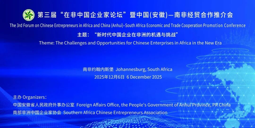 论坛由安徽省人民政府外事办公室与南部非洲中国企业家协会联合主办。