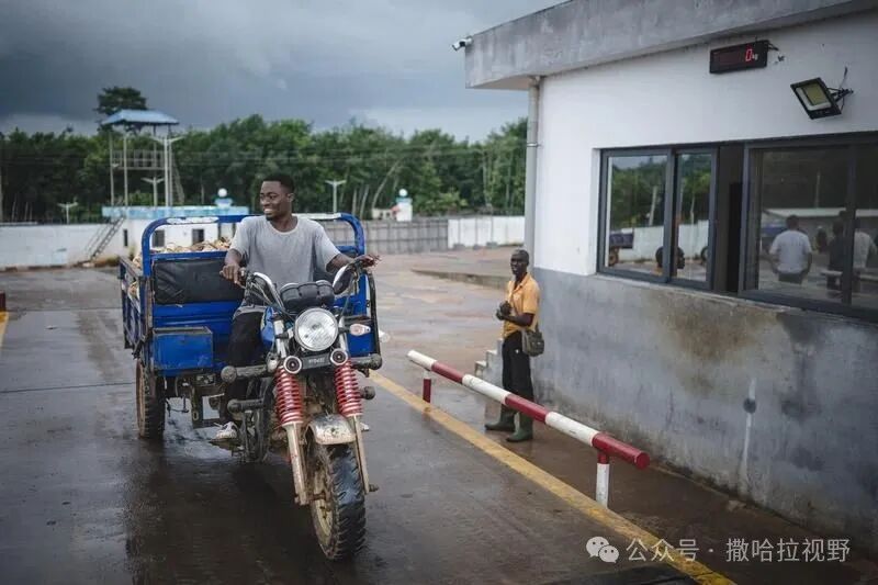 5月29日,在位于科特迪瓦圣佩德罗省大贝雷比镇的美兰集团橡胶加工厂,橡胶种植户驾驶三轮摩托车经过磅秤为杯胶称重。新华社记者 王冠森摄