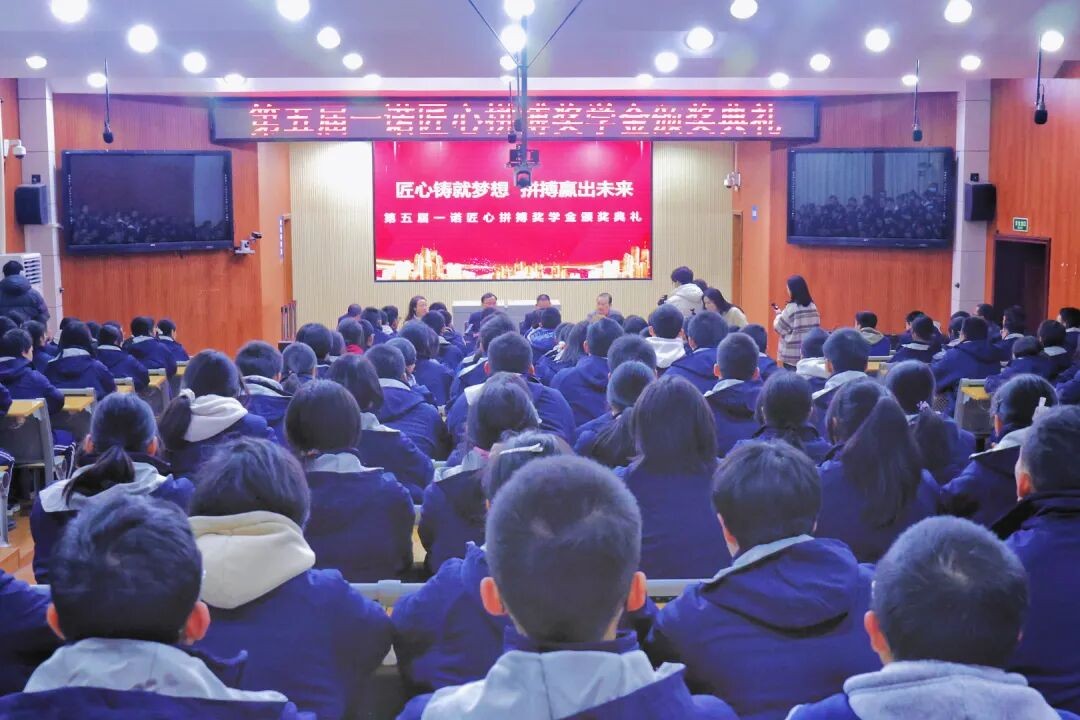 编者按:2025年12月18日第五届一诺匠心拼搏奖学金颁奖仪式圆满举行。一诺匠心拼搏奖学金于2020年由北京常德企业商会副会长、鼎城一中校友刘志波创办,至今已举办四届,旨在奖励在“德、智、体、美、劳”某项领域成绩突出的鼎城一中学子,鼓励学子们匠心拼搏,成为社会的栋梁之材。
