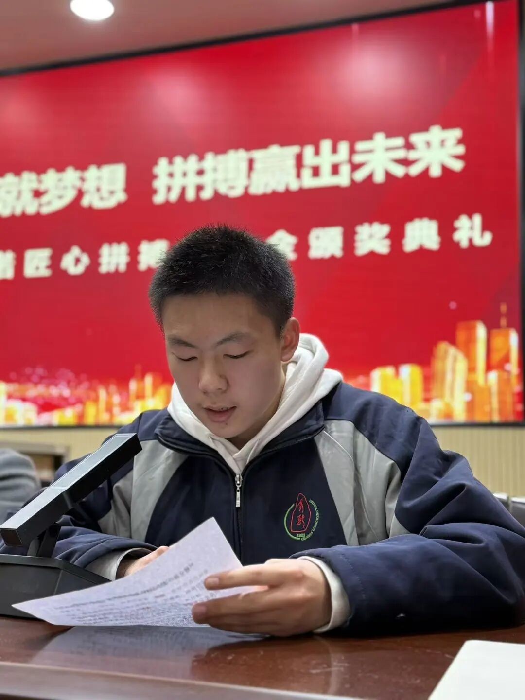 谭森文作为学生代表发言表示,这份奖励是对获奖学生过往勤勉的肯定,更是对未来征程的鞭策。它时刻提醒要常怀感恩之心,珍惜来之不易的学习机会;要立志高远、匠心拼搏,将个人的理想融入时代发展的洪流。并承诺必将以此为动力,更加刻苦钻研,锤炼品德,努力成长为一个有知识、有担当、有温度的人。