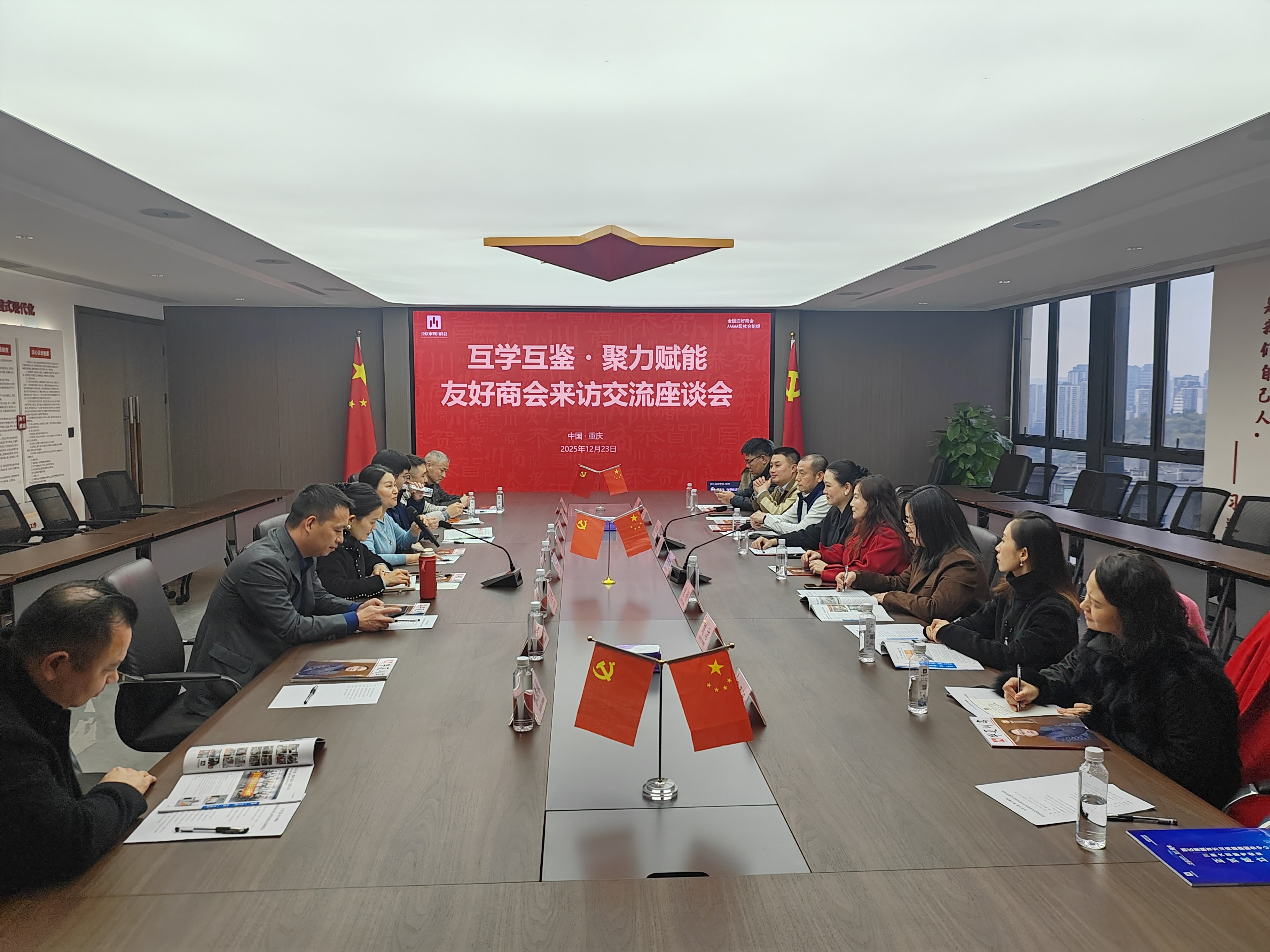 12月23日,以“互学互鉴·聚力赋能”为主题的友好商会来访交流座谈会在重庆市四川商会会议室顺利召开。重庆市北京商会、安徽商会、云南商会等三家友好商会代表嘉宾应邀参加,各方齐聚一堂、交流经验,共探商会发展新路径。