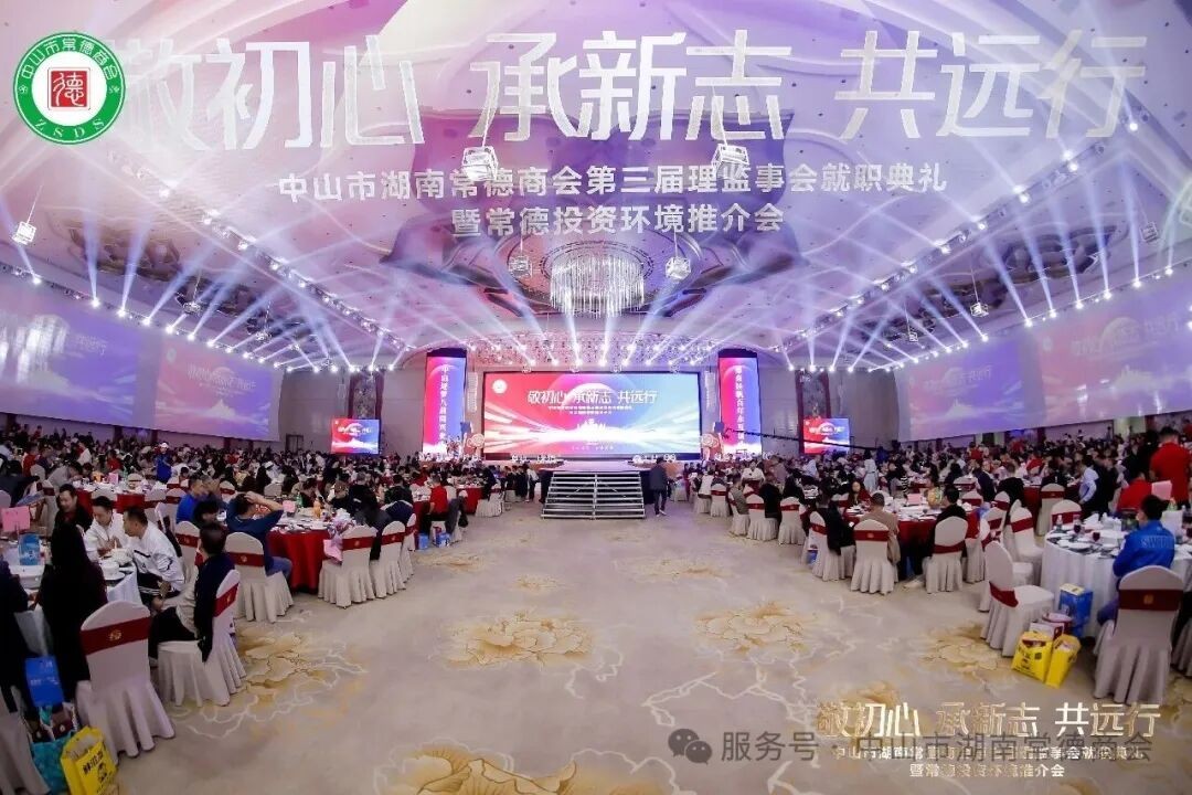 2025年12月16日下午,中山市南头镇孖宝庄园国宴厅内宾朋满座、乡音萦绕。中山市湖南常德商会第三届理监事会就职典礼暨常德投资环境推介会在此隆重举行。出席活动的领导嘉宾有:中山市政协副主席徐小莉,常德市政协副主席(提名人选)、常德市工商联主席、总商会会长陈宏元,中山市委原常委、军分区原政委熊高华,珠海市委原常委、珠海警备区原政委覃佐堂,珠海警备区原副司令员熊奇勤,珠海市香洲区人大原副主任、一级调研员张先进,常德市人民政府驻深圳联络处主任王夏一,中山市民政局四级调研员、中山市社会组织总会副会长兼秘书长蒋森等。商协会嘉宾有:中山市湖南商会会长陈秋桂,中山市坦洲镇工商联主席(会长)赵志枚,广东省湖南常德商会会长刘泳,深圳市常德商会会长黄明杰,东莞市湖南常德商会会长陈宏,惠州市常德商会会长陈建华,珠海常德商会会长李世民,北京常德企业商会监事长孙松柏,海南省常德商会会长孙建喜,郴州市常德商会会长田安军,衡阳市常德商会会长袁祥,张家界市常德商会会长彭中华,西安市常德商会会长李建,湘西自治州常德商会会长吴彬,常德市农业产业协会会长龚佑琼,中山市邵阳商会会长欧永甜,中山市湖南郴州商会会长曹志吉,中山市湖南衡东商会会长谭升平,中山市湖南祁东商会会长张见效,广州市湖南桃源商会会长罗钧,东莞市湖南桃源商会会长李亚军等。第三届理监事会成员、会员及家属、常德乡贤等1000余人齐聚一堂,共同见证中山市湖南常德商会翻开崭新篇章。