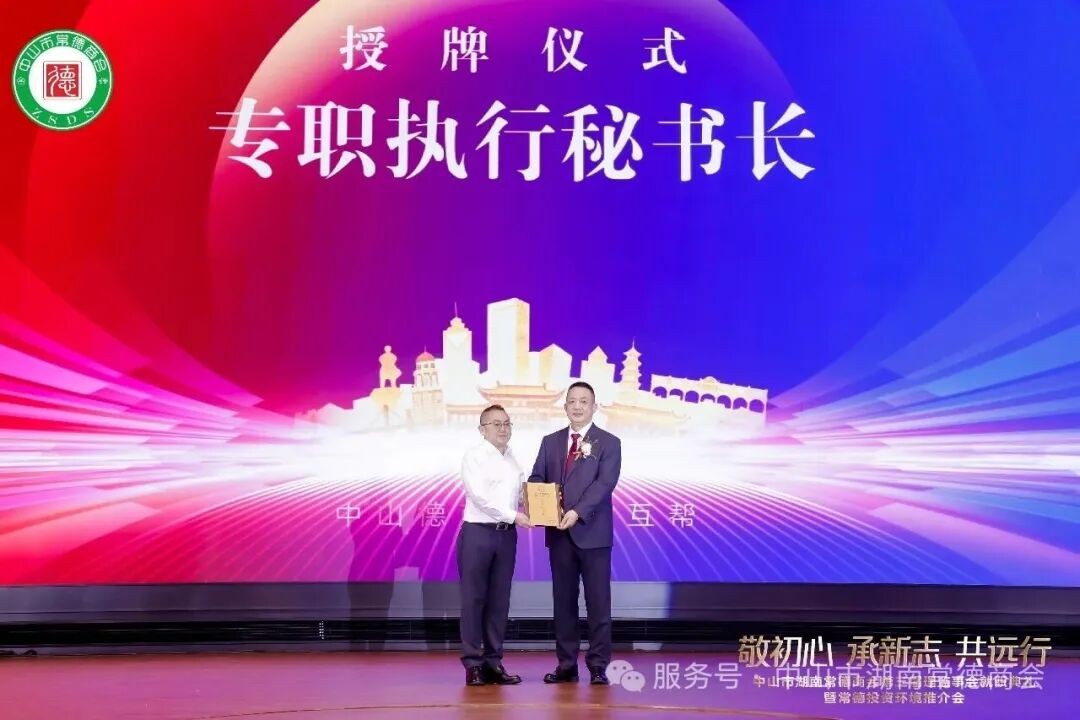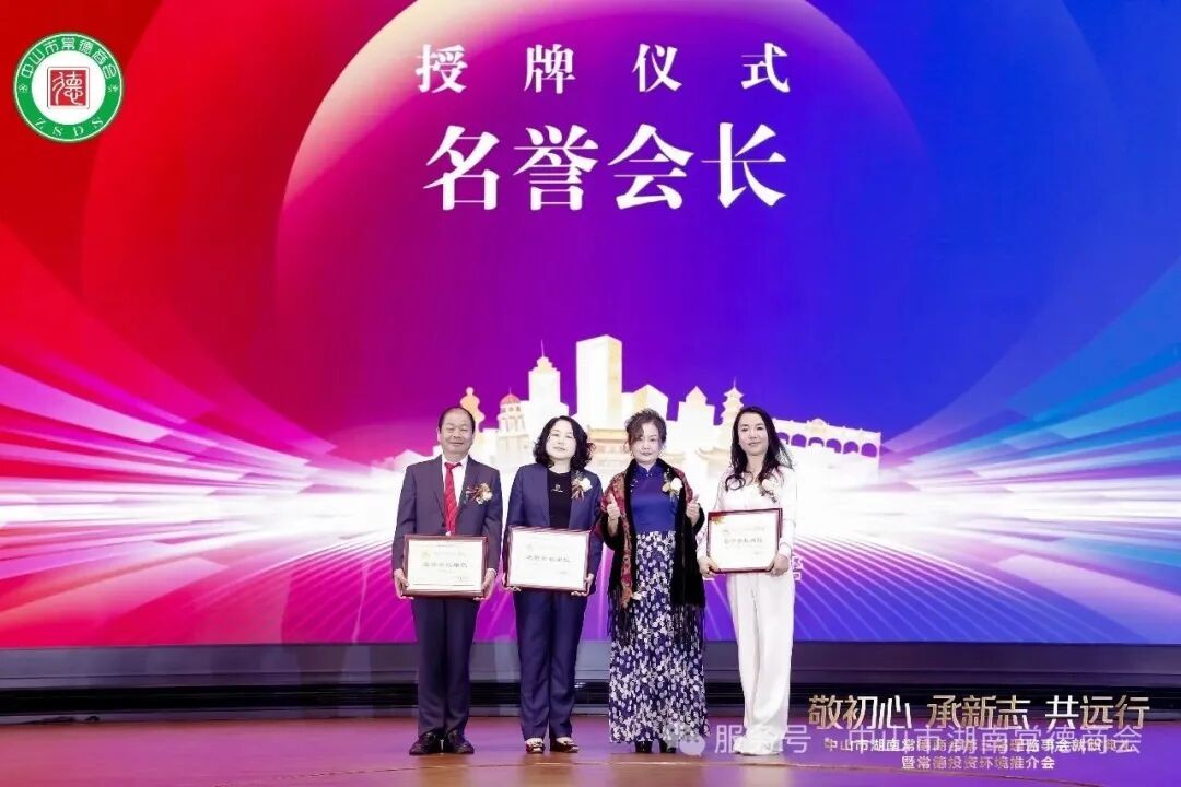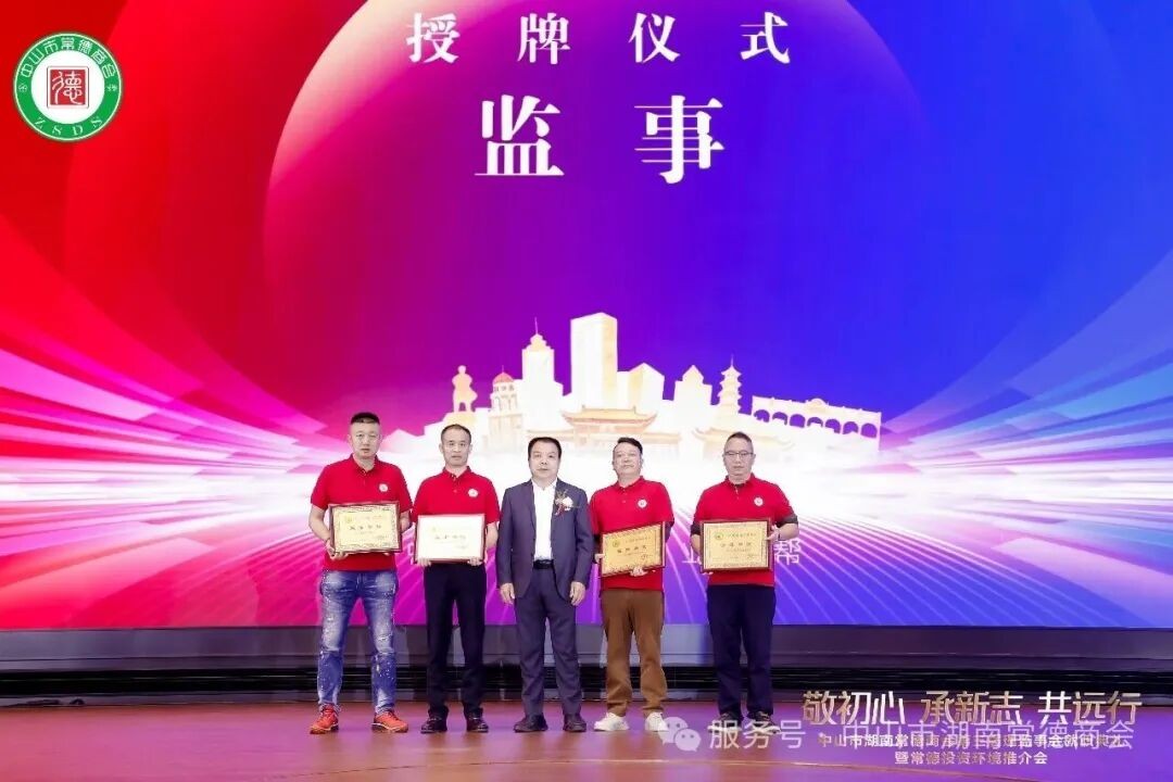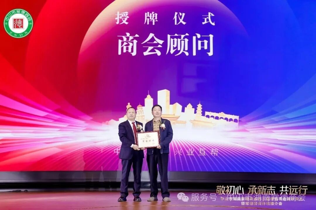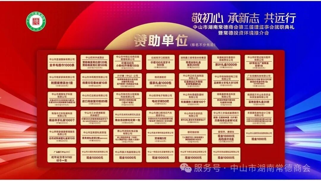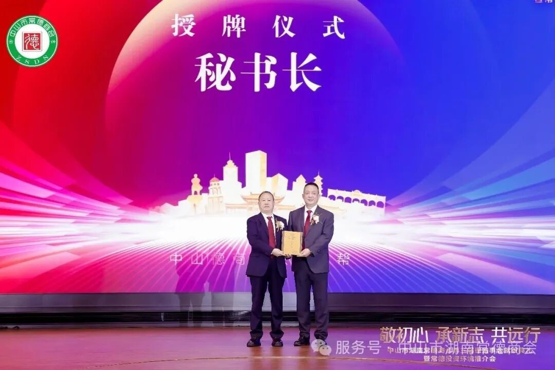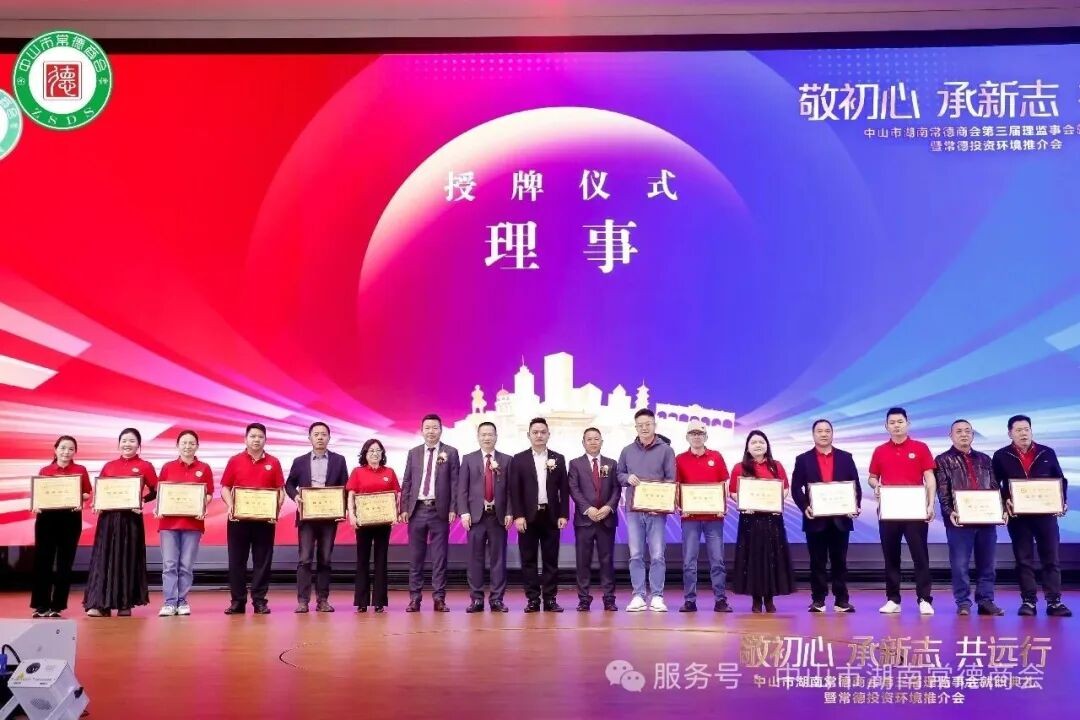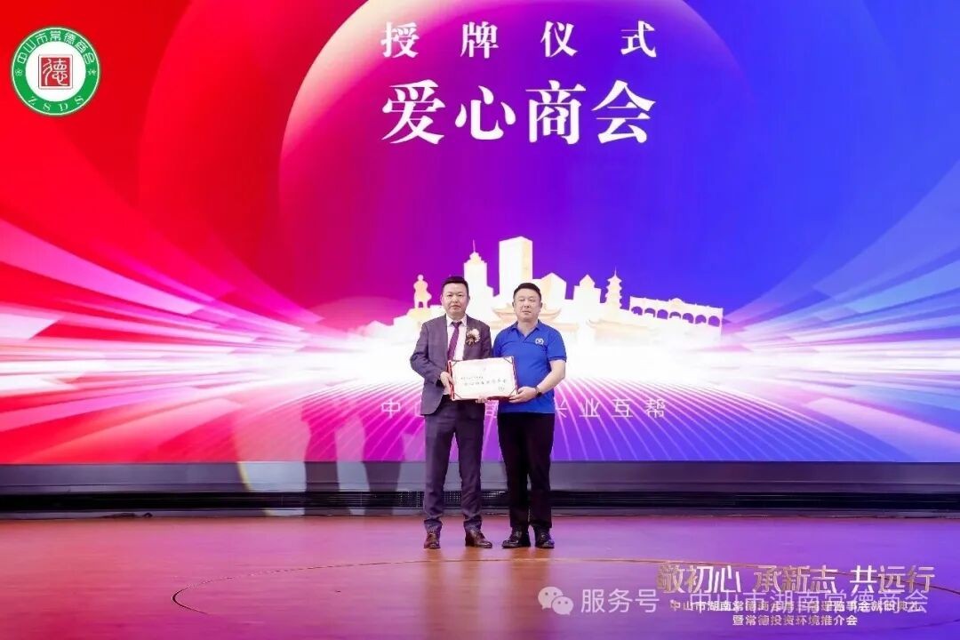 值得一提的是,活动现场还上演了诸多精彩瞬间:广发银行中山分行与商会签署战略合作与授信协议,为会员企业发展注入金融活水;湖南省馨心公益促进中心为商会颁发“最佳爱心公益商会”牌匾,见证商会践行社会责任的暖心足迹;释心堂酒业等赞助商登台推介,为乡贤们搭建起资源对接的广阔平台。