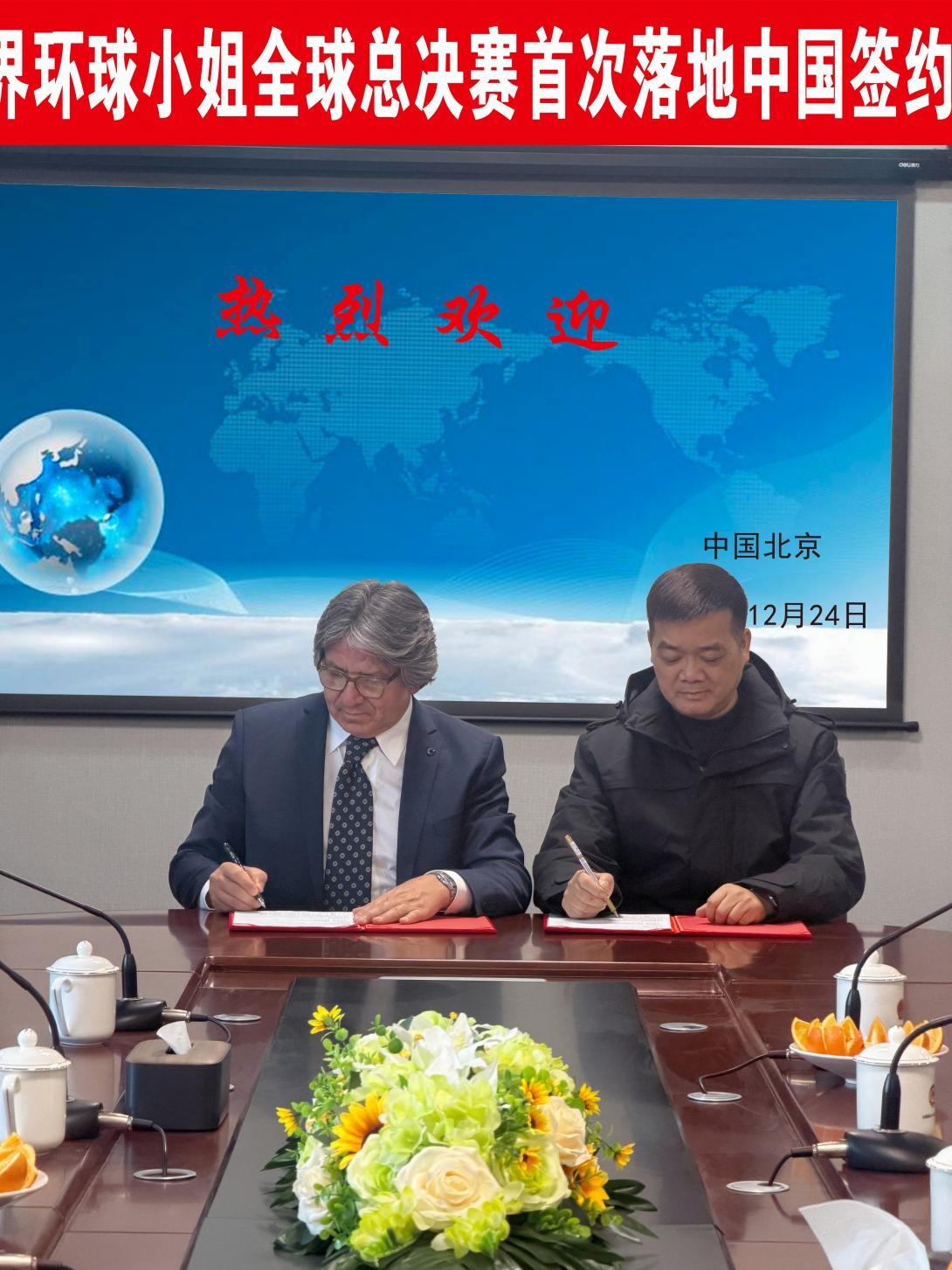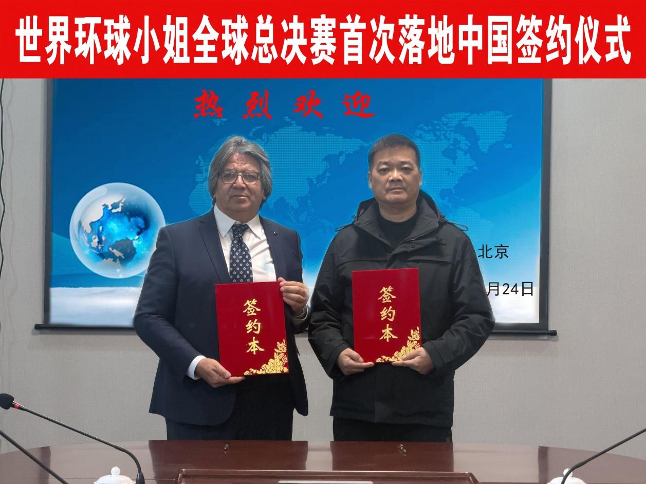 2025年12月24日,世界环球小姐组委会主席Rasim Aydin与北京常德企业商会执行会长、湘之文化(北京)有限公司董事长刘湘之在北京湘之文化成功签约,世界环球小姐全球总决赛将由湘之文化(北京)有限公司承办,这标志着该项享有全球声誉的顶级选美赛事总决赛2026年将首次在中国举办。