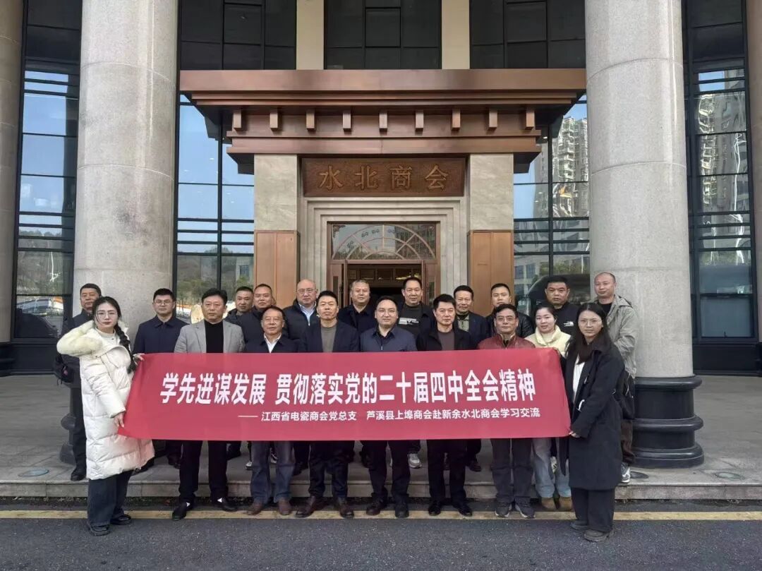 12月26日,萍乡市芦溪县委统战部副部长、县工商联党组书记、常务副主席温杰带领中共江西省电瓷商会总支委员会、萍乡市芦溪县上埠商会一行24人莅临水北商会,开展考察交流活动。考察团成员包括:萍乡市芦溪县工商联党组成员、副主席文勇,江西省电瓷商会总支书记、上埠商会会长许康文,江西省电瓷商会总支五厂支部书记杜志远,星海支部书记、上埠商会执行会长肖波,通达支部书记陈敏,上埠商会常务副会长李智,监事长陈敏,副会长许雪高、谭红斌、徐勇,秘书长叶波等。水北商会党委副书记、常务副会长陈木生,总顾问何华武,秘书长傅小勇热情接待了考察团一行。