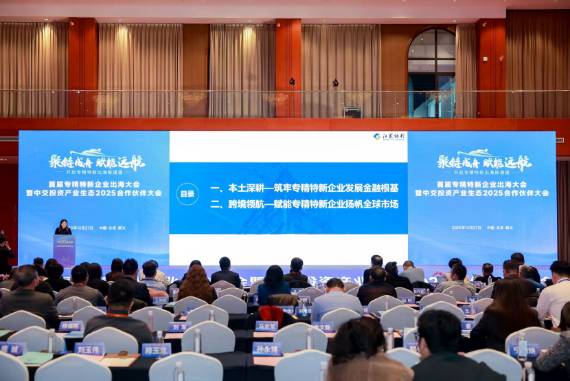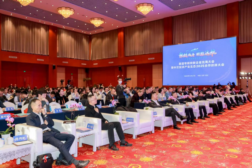 12月27日,首届专精特新企业出海大会暨中交投资产业生态2025合作伙伴大会在京举行。此次大会以“聚链成舟·赋能远航”为主题,紧紧围绕“定方向、给方法,助力专精特新企业出海稳落地”的核心宗旨,成功搭建起一个集政策精准解读、经验深度分享、资源高效整合于一体的高端合作交流平台。政府领导、行业权威专家、央企龙头代表以及全国各地的专精特新企业代表齐聚一堂,共同擘画中国专精特新企业国际化发展的崭新蓝图。