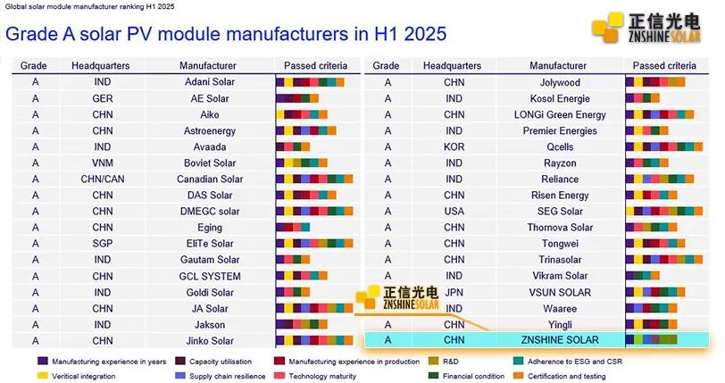 正信光电名列Wood Mackenzie 2025年上半年“A级”制造商名单,彰显全球制造实力与光伏行业领导地位