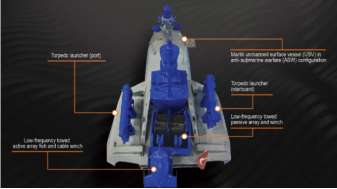 2.土耳其展示无人水面艇反潜模块。土耳其Aselsan公司首次展示将Mini-Düfas低频主动拖曳阵列和被动拖曳声纳系统集成在Marlin无人水面艇上。Marlin排水量为21长吨,长15米,横梁3.85米,用于包括监视和海防在内的一系列活动,速度可达35节(65公里/小时),航程为1900公里,其续航时间长达72小时,由两台柴油发动机提供支持,集成了KARETTA动态定位、GNSS抗干扰系统和主动稳定系统等系统,增强了其导航能力。在武器装备和防御方面,该USV配备12.7毫米遥控武器站、远程导弹和轻型鱼雷,它还具有电子战支持系统和声纳浮标,增强了其电子战的防御和进攻能力。Düfas是一种为水面战斗舰艇设计的低频拖曳式主动和被动声纳系统,具有主动和被动阵列以及检测和跟踪功能有助于远程反潜战和监视任务,该声纳系统于2018年投入开发,在TCG Inebolu上进行了测试。Düfas-M声纳系统的湿端由低频拖曳有源阵列和低频拖曳无源阵列组成,分别安装在无人艇后甲板的绞车上。在左右舷各设置两个鱼雷发射器,艇载电子系统由信号处理和电源柜以及控制室的操作员控制台组成。硬件组件的测试正在进行,Marlin无人水面艇的海上试验定于2024年下半年进行。