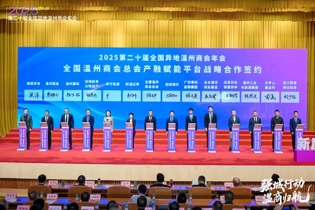 年会期间,29个涵盖产业协同、金融服务等领域的合作项目及温商归航项目集中签约。温州理工学院与江西、河南、贵州三家省级温州商会达成战略合作。部分商会代表作交流发言。