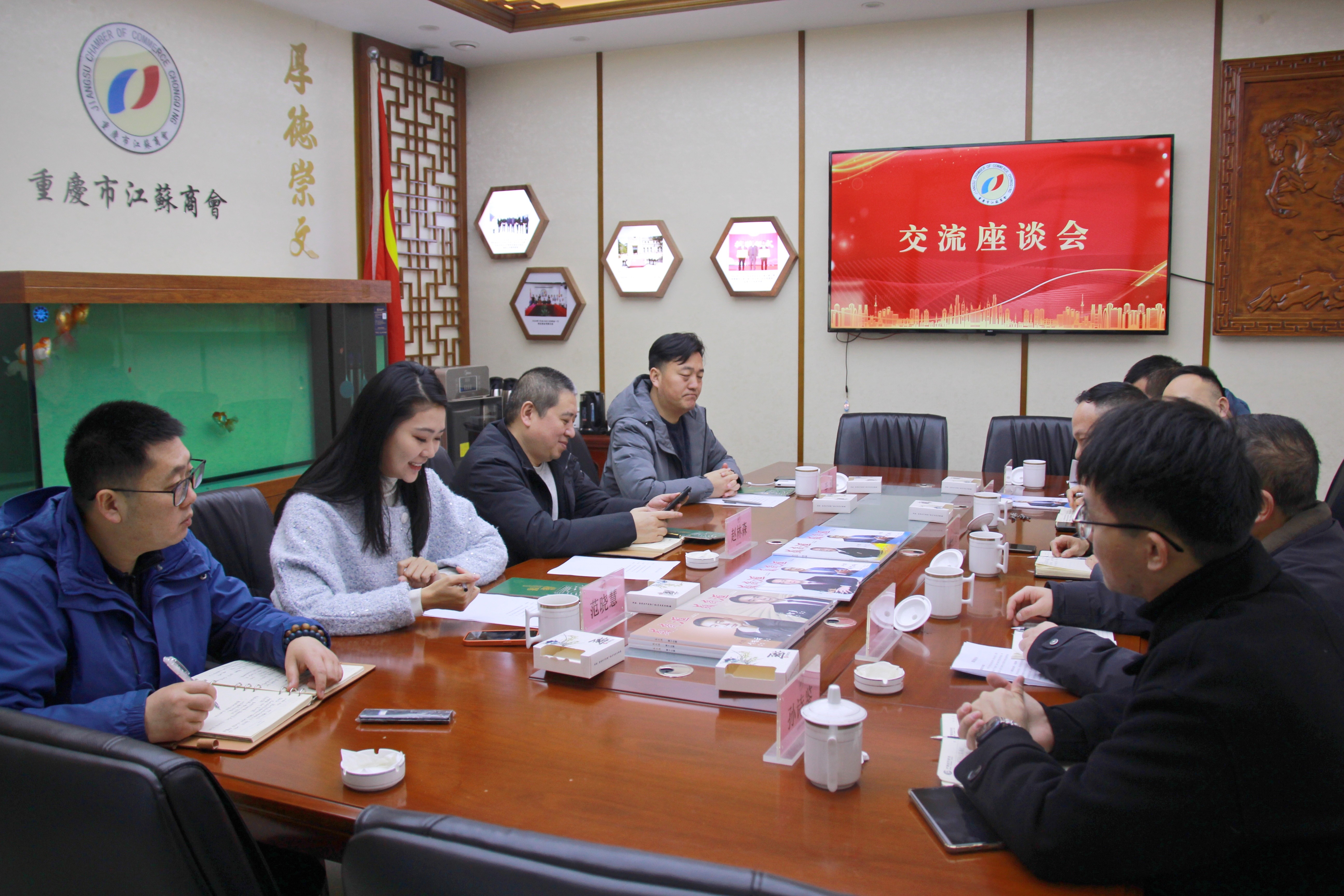 1月5日上午,德阳市政府驻西部联络处主任杨廷友、副主任王苗,德阳市政府驻重庆联络处主任曾诗劲、副主任孙诗鉴、副主任李攀峰一行到访重庆市江苏商会。商会秘书长赵林森,副秘书长李刚、范晓慧及秘书处工作人员热情接待并举行座谈。双方共同观看了重庆市江苏商会宣传片与德阳市城市形象宣传视频,就加强双向联系、促进产业协作进行了深入交流。