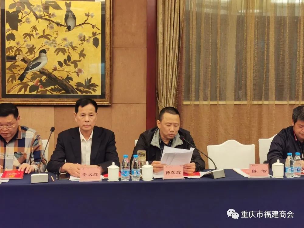 重庆市工商联党组成员、副主席,社会组织综合党委书记陈智,重庆市工商联社会组织综合党委干部王一东受邀出席会议。重庆市工程机械商会、重庆市福建商会、重庆市广东商会、重庆市工商联青委会等21家商(协)会党组织书记、党务秘书参加此次会议。我会党委书记傅荣辉出席会议,我会副会长元少林、叶祖盼,会员林恩成、王邦荣分别代表重庆市工商联青委会党支部、重庆市渝联建材商会党支部、重庆市福建漳州商会党支部和重庆市宁德商会出席会议并发言。