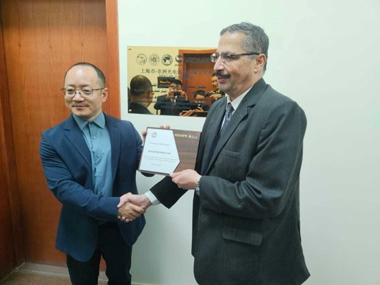 陈宏宇会见了ADMiR 主任穆罕默德·埃尔加布里,了解了该中心在卫星遥感地震监测、多灾种风险评估、空间观测与数据分析等方面的工作进展介绍。双方探讨了联合研制“非洲减灾一号卫星”的具体计划,并就遥感数据智能技术服务非洲减灾应用以及非洲光电遥感人才培养等方面达成初步共识,形成初步的合作路径。随后,双方共同见证了“上海市非洲光电遥感与减灾应用国际联合实验室”揭牌仪式,该联合实验室分别挂靠埃及ADMIR和中国复旦大学,穆罕默德和陈宏宇分别任埃方主任和中方执行主任。