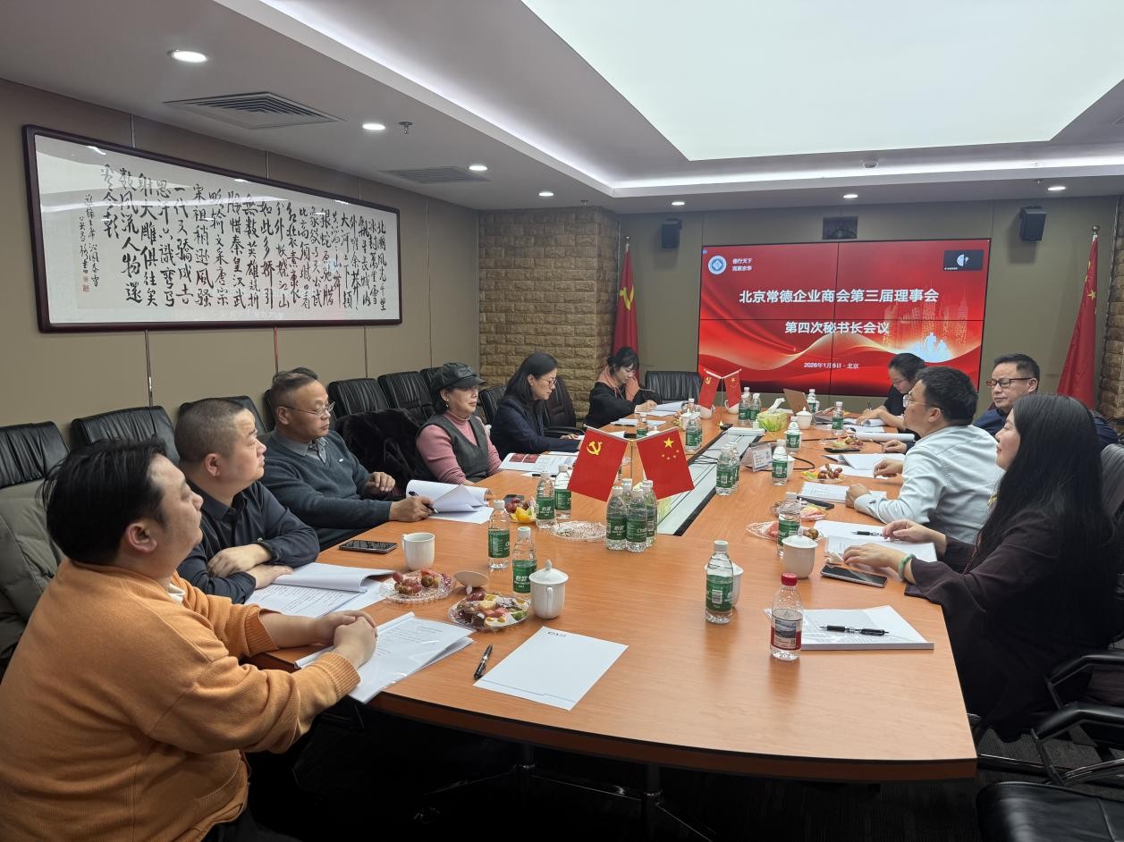 2026年1月5日下午,北京常德企业商会第三届理事会第四次秘书长会议于大信会计师事务所会议室成功举行。本次会议旨在系统总结过去一年的工作成果,并全面部署即将到来的年度盛会。会议由商会党支部书记兼秘书长谢泽敏主持,特邀轮值会长刘业纯莅临指导,秘书处成员:执行秘书长彭莎、常务副秘书长刘晓燕、副秘书长余华龙、彭龙、姚华、朱文珍、汪艳、侯水平、王晓雨、罗晶伟与会。