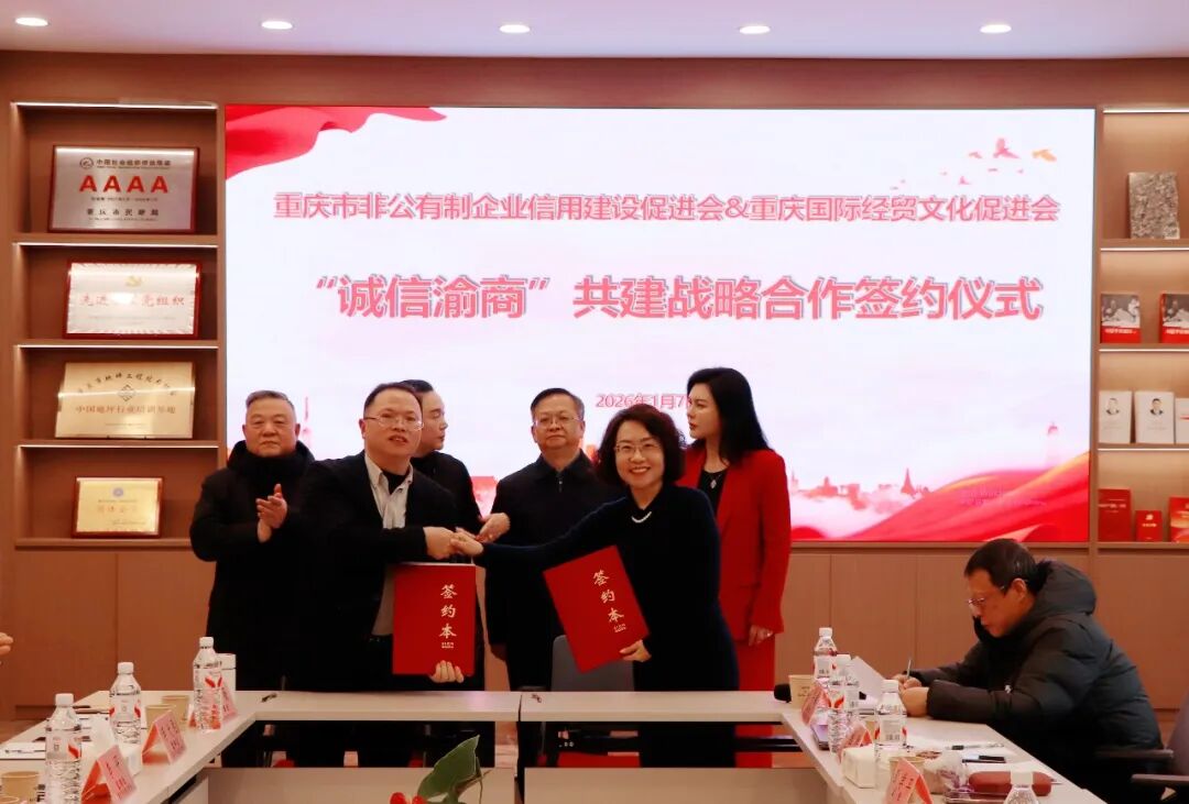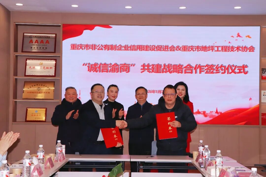2026年1月7日,重庆市工商联第九监事工作委员会2025年终总结会在重庆市地坪工程技术协会会议室圆满召开。会议以“规范监督提质效,诚信共建促发展”为核心,同步举行“诚信渝商”共建战略合作协议签约仪式,重庆市地坪工程技术协会等10家商协会现场签约加入信用共建阵营,至此累计签约单位67家,重庆“诚信渝商”生态圈建设迈入规模化发展新阶段。会上透露,促进会启动“千企陪跑行动”,将“一对一”、手把手帮助企业“增信”,欢迎更多企业搭上“信用快车”,共享政策红利和市场机遇。