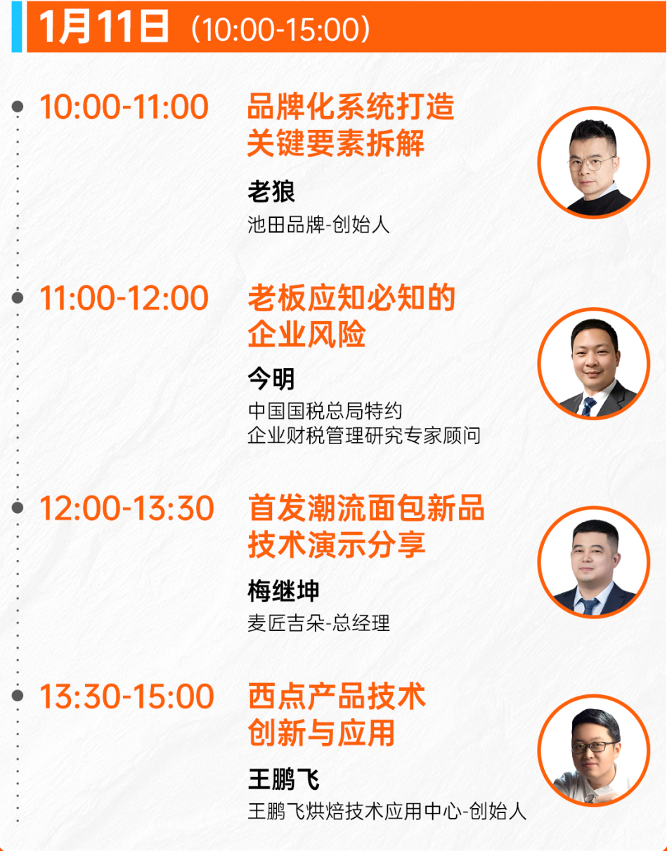 明日(1月11日),大会将迎来收官之日。新品选品区将继续为大家展示新品与提供洽谈的机会,公开课将聚焦“产品技术与营销赋能”。敬请各位烘焙人把握最后机遇,莅临长沙·湖南国际会展中心(芒果馆),共赴这场年度烘焙盛会,携手开启2026增长新篇章!