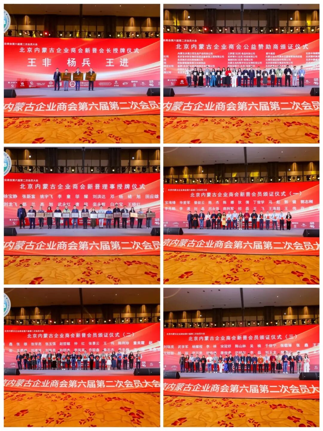 随后,北京内蒙古企业商会会长郭建君,党支部书记、执行会长吴喜春,执行会长赵志宏,常务副会长聂振勇、王进平、王云厅以及出席会议的会长团队联合登台致欢迎辞;出席大会的异地商会正职会长、党支部书记现场登台联合致自我介绍辞。