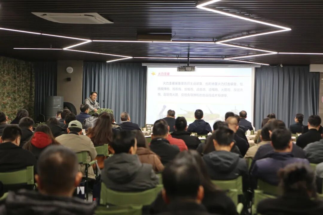 会上,国防科技大学工学博士、原总装备部正团级军官胡正东带来以“武器装备体系概况”为题的讲座。他结合自身深耕装备研制与国防教育一线的丰富经验,围绕陆军、海军、空军、火箭军的武器知识与国防安全知识展开深入阐释,以深厚的学术功底、广阔的军事视野和生动的案例分析,为参会人员上了一堂震撼心灵、启迪思想的“新年第一课”。